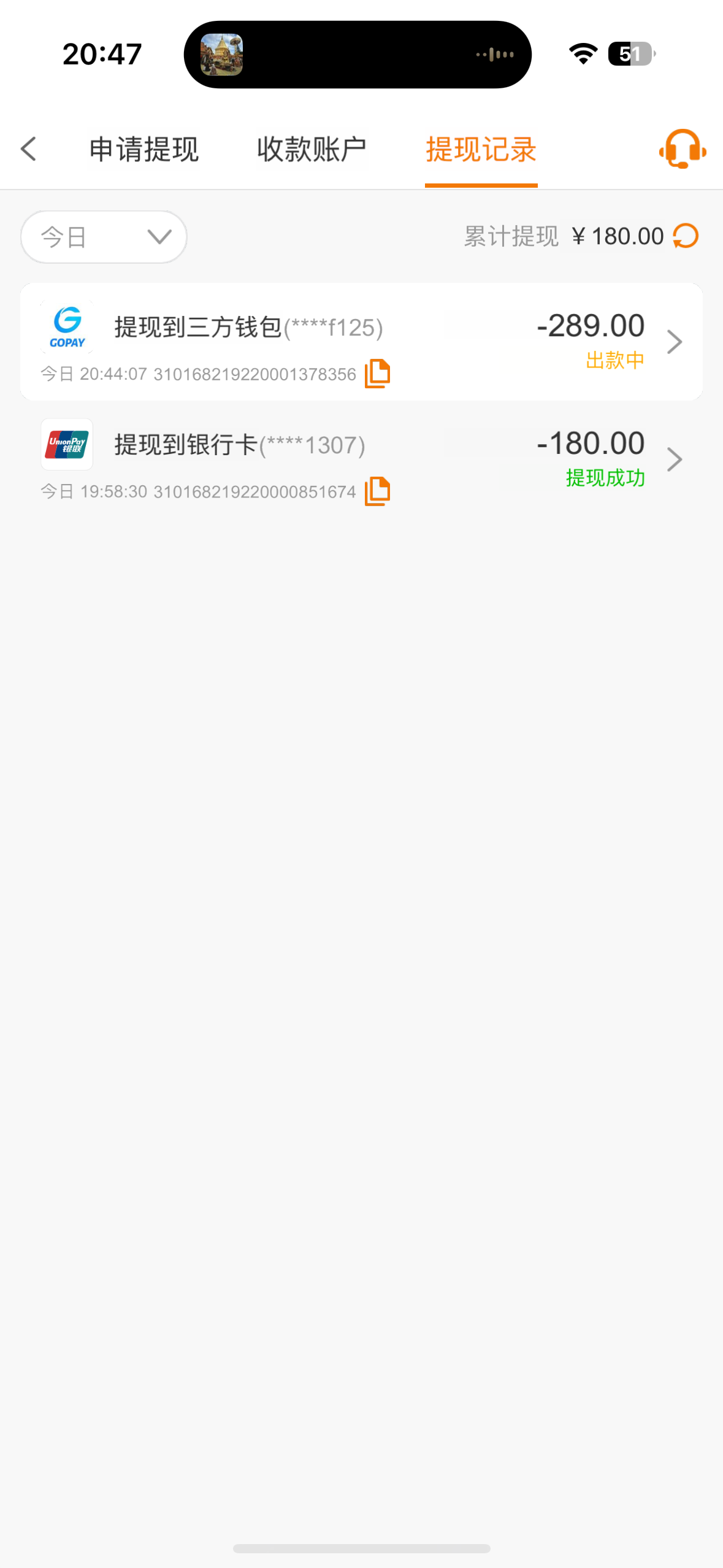到账了