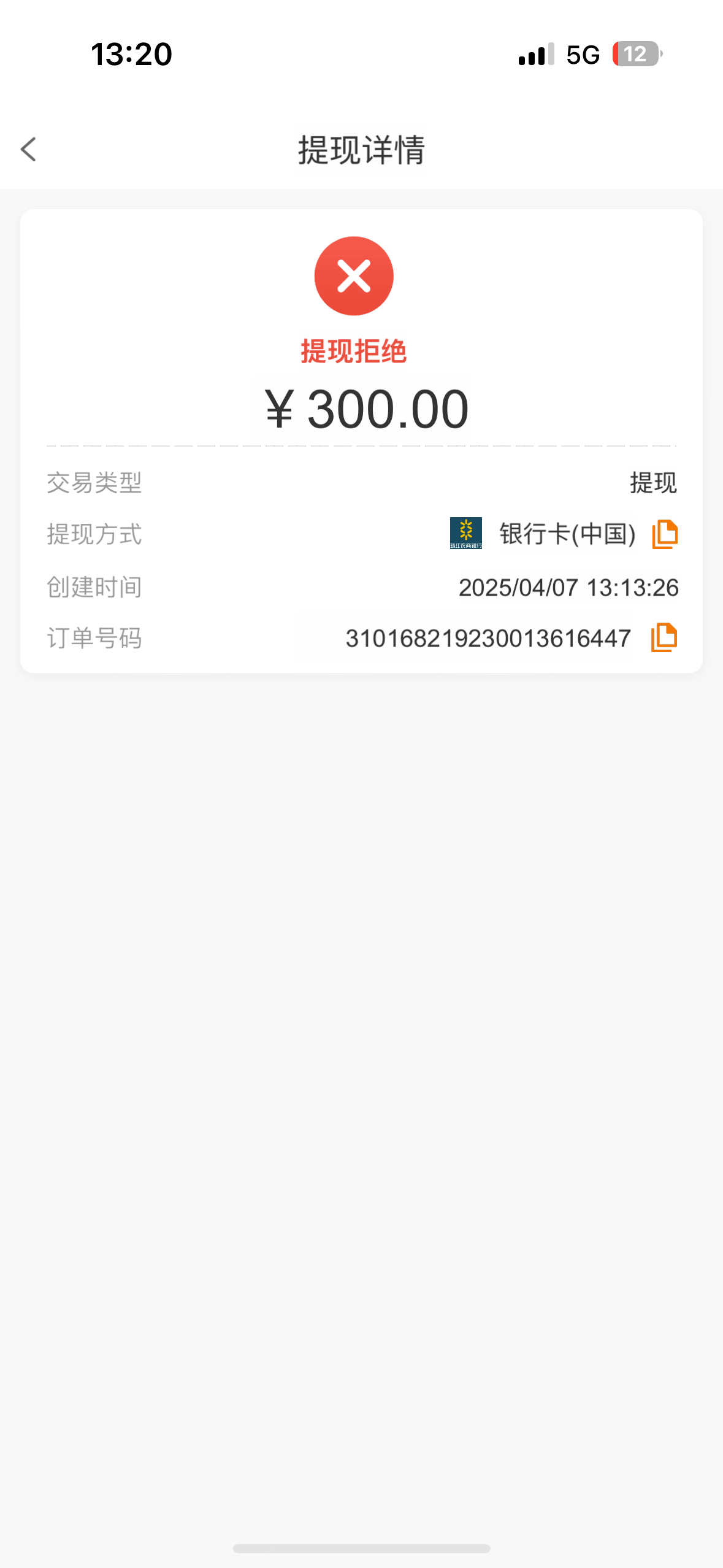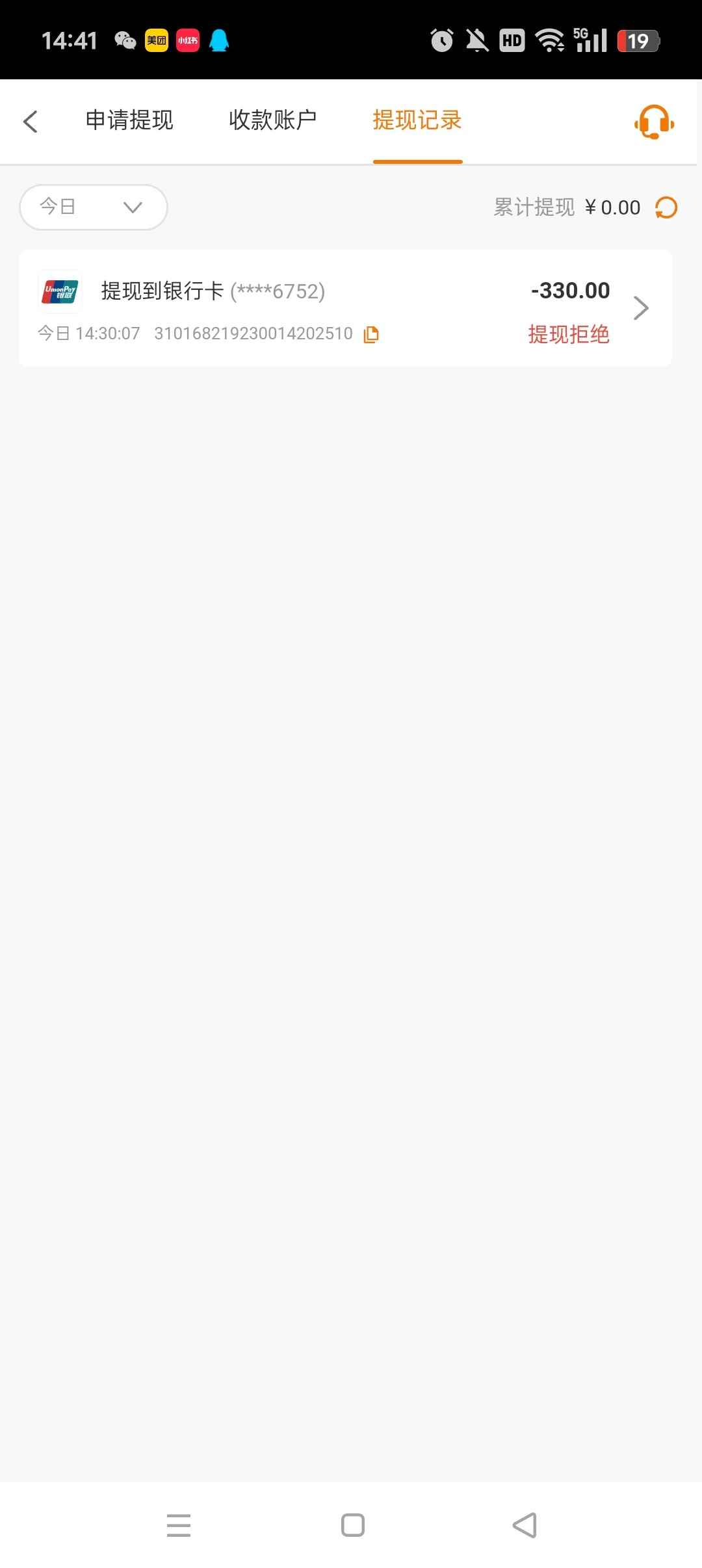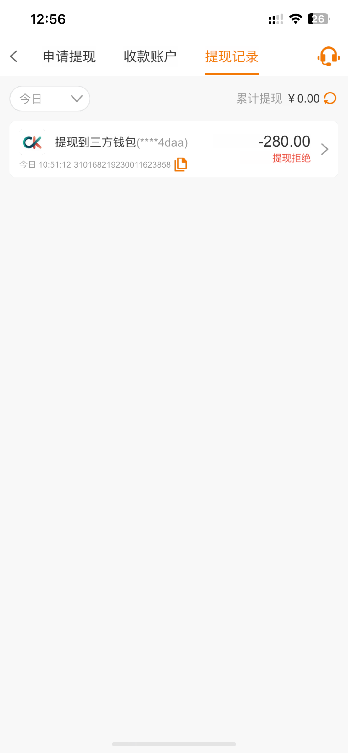 提现拒绝,余额也没了