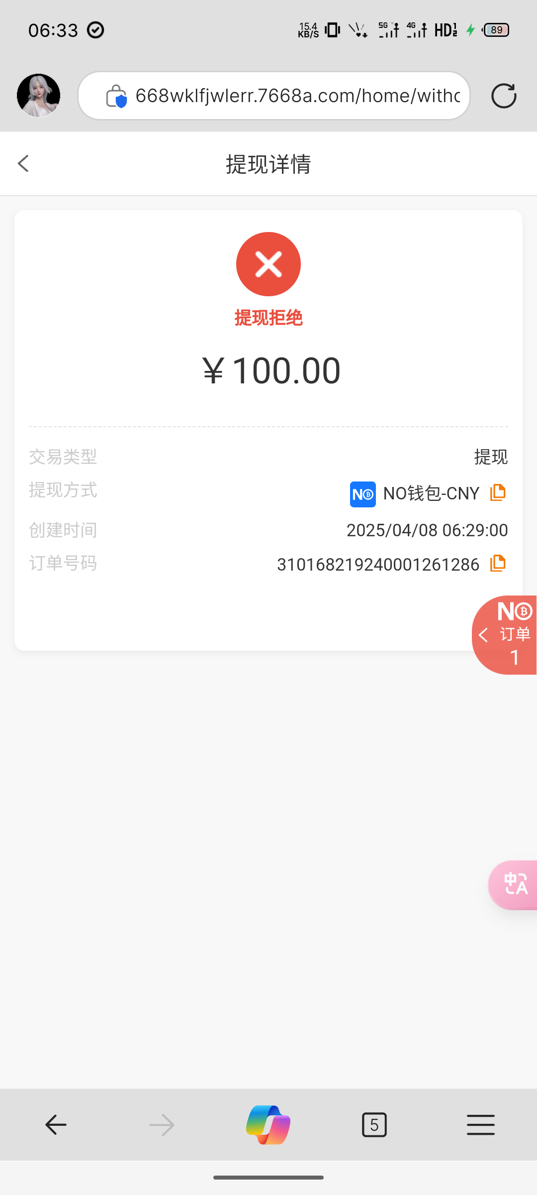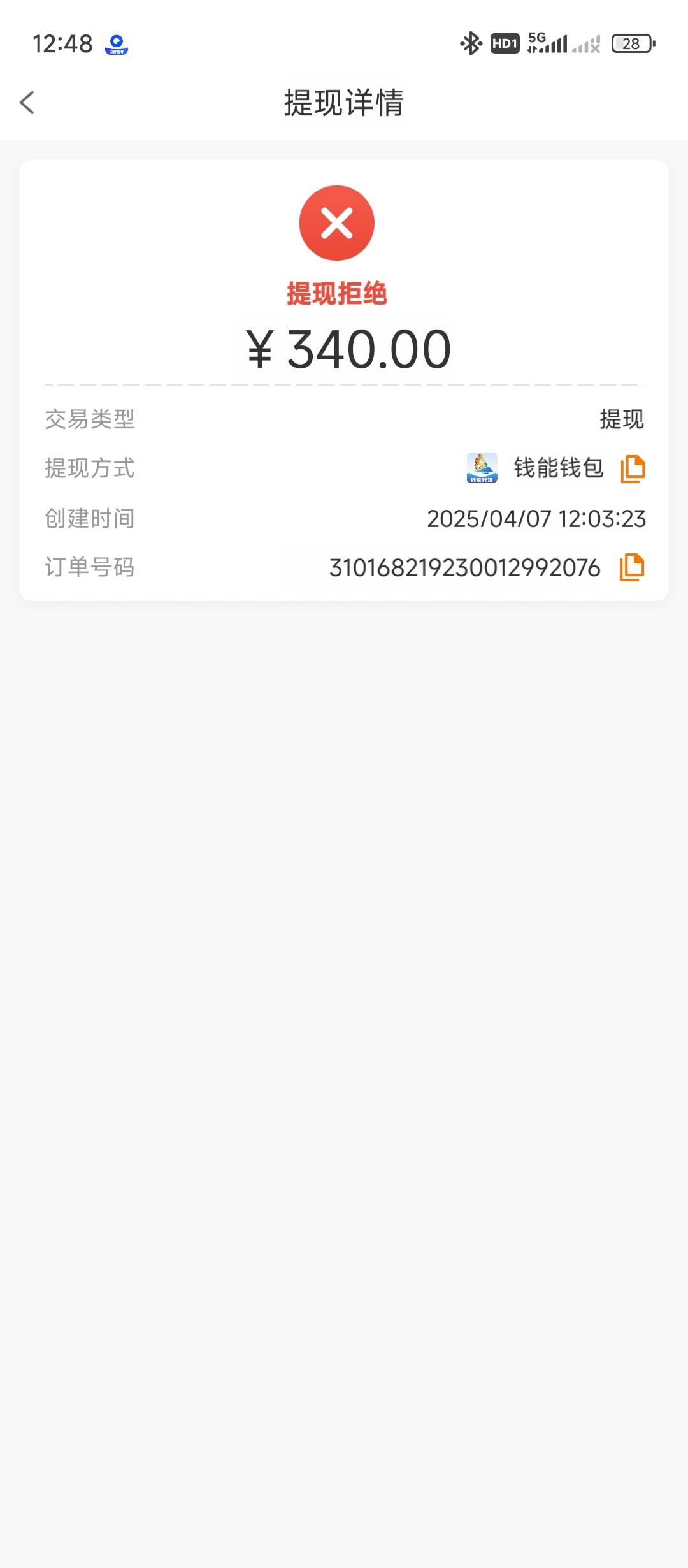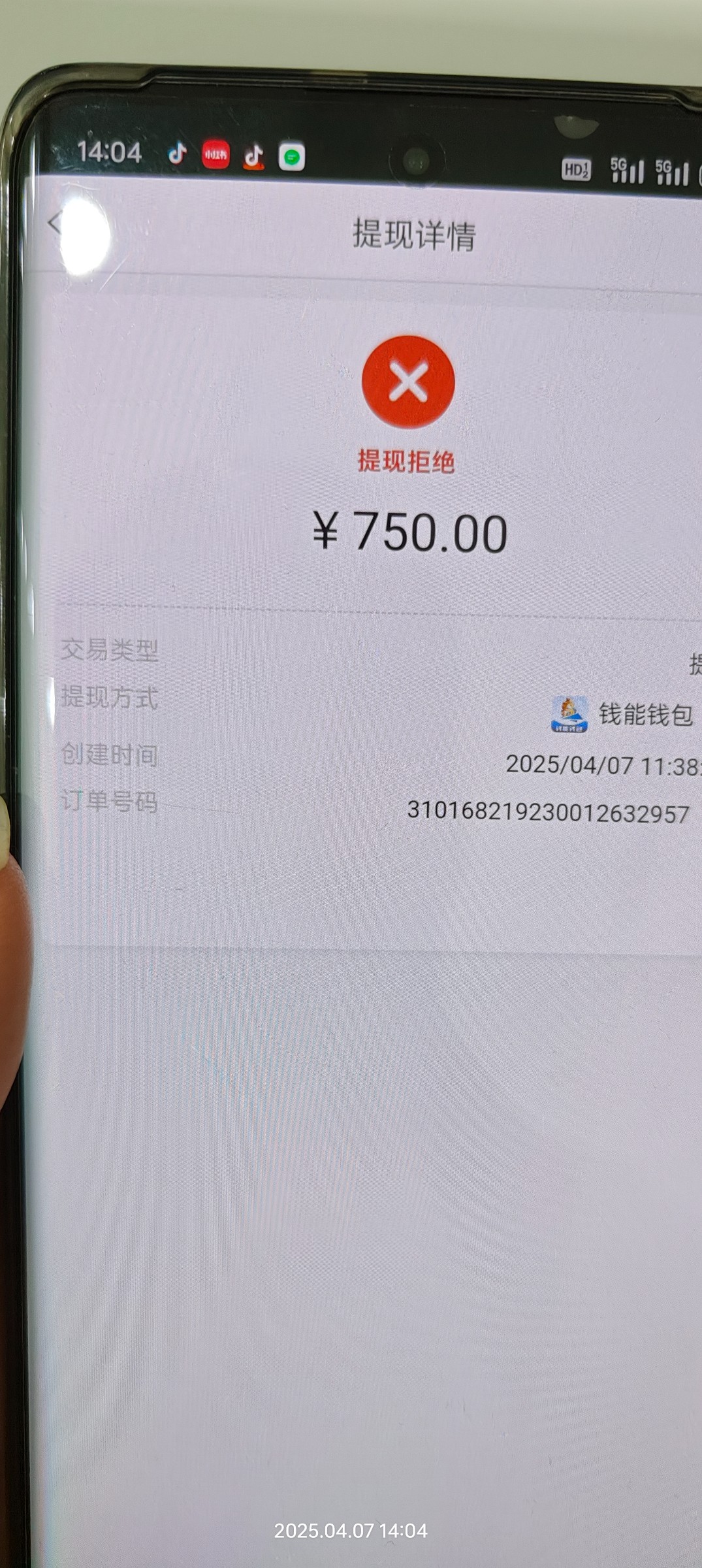 提现拒绝,余额也没了