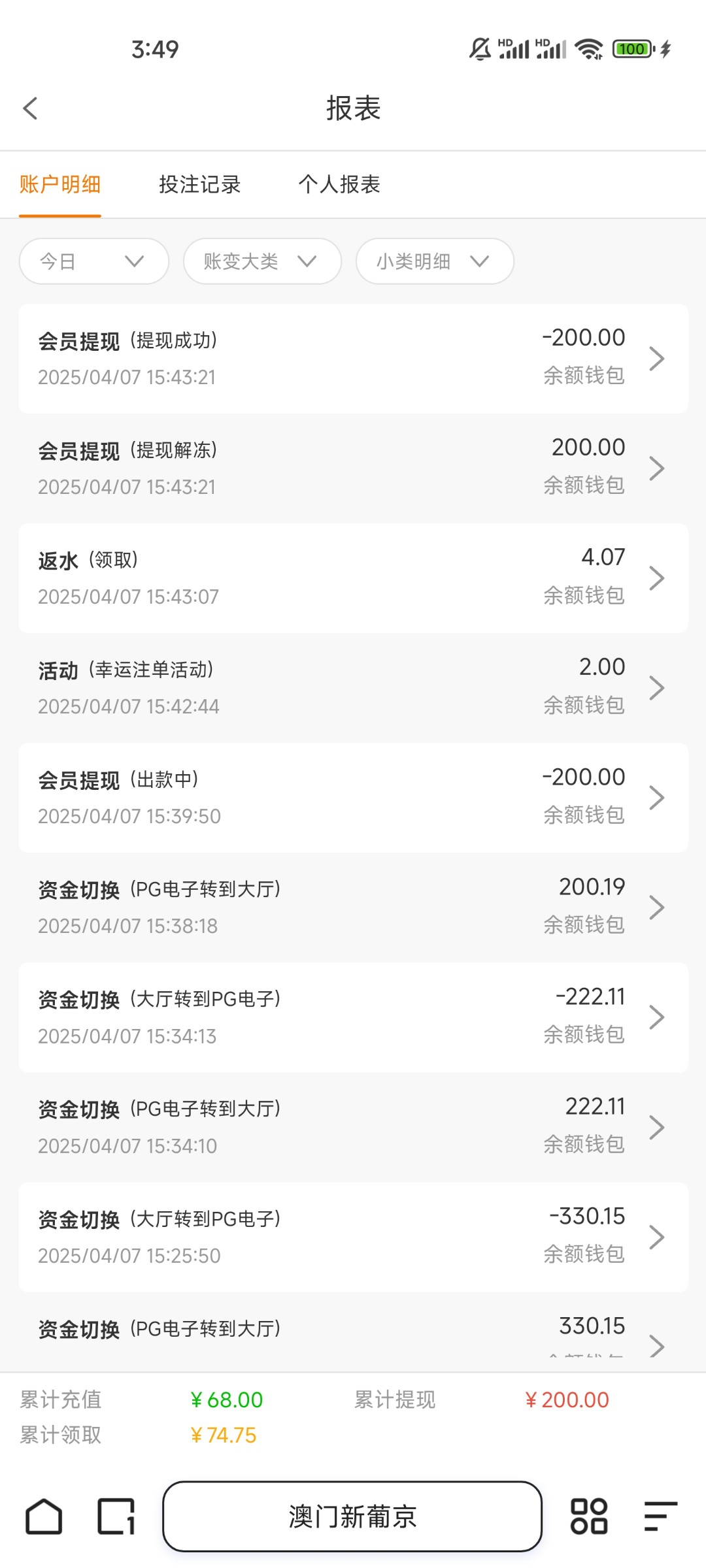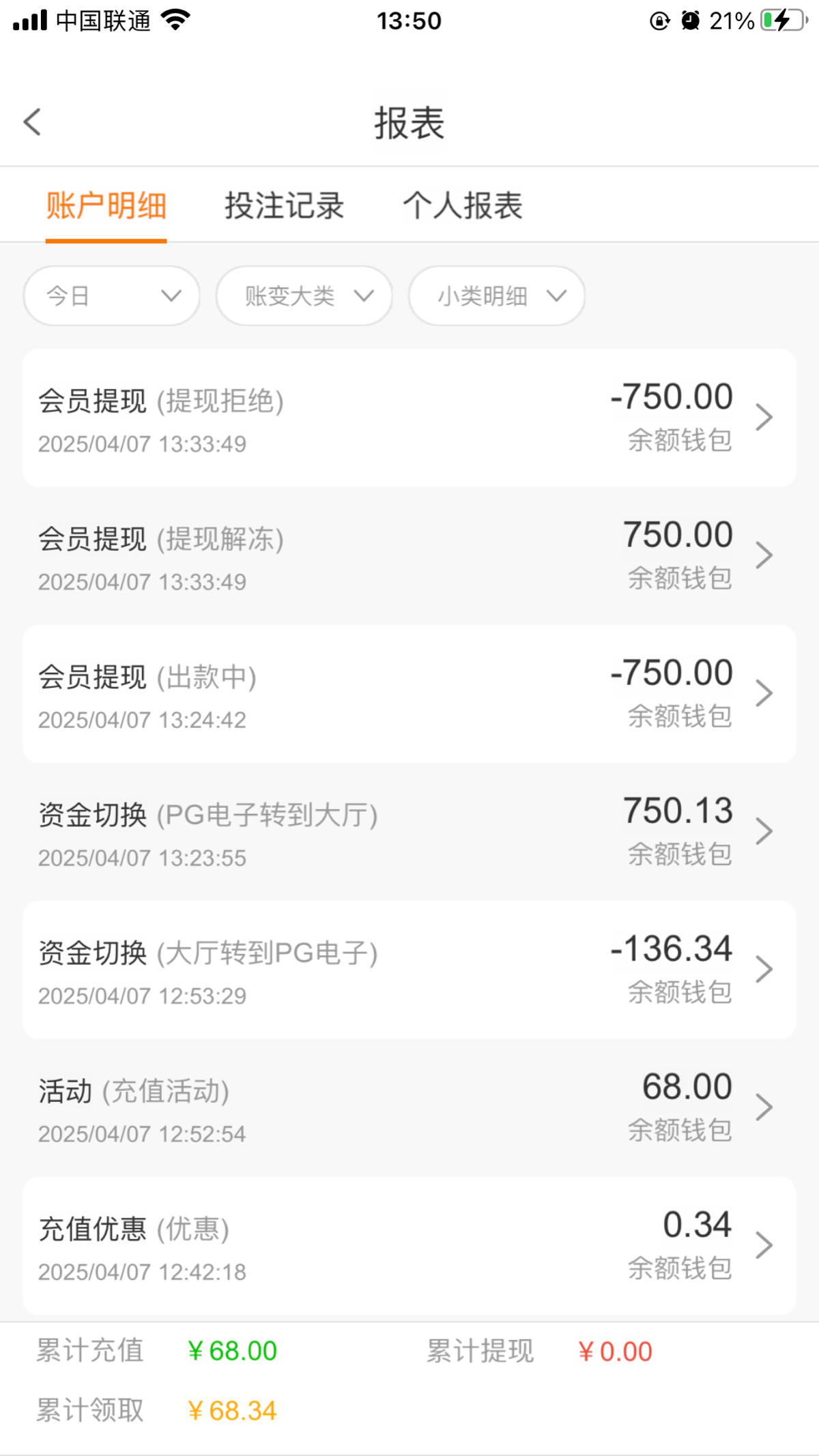别去了,冲68送68打了30倍流水。800提款,账号封了
