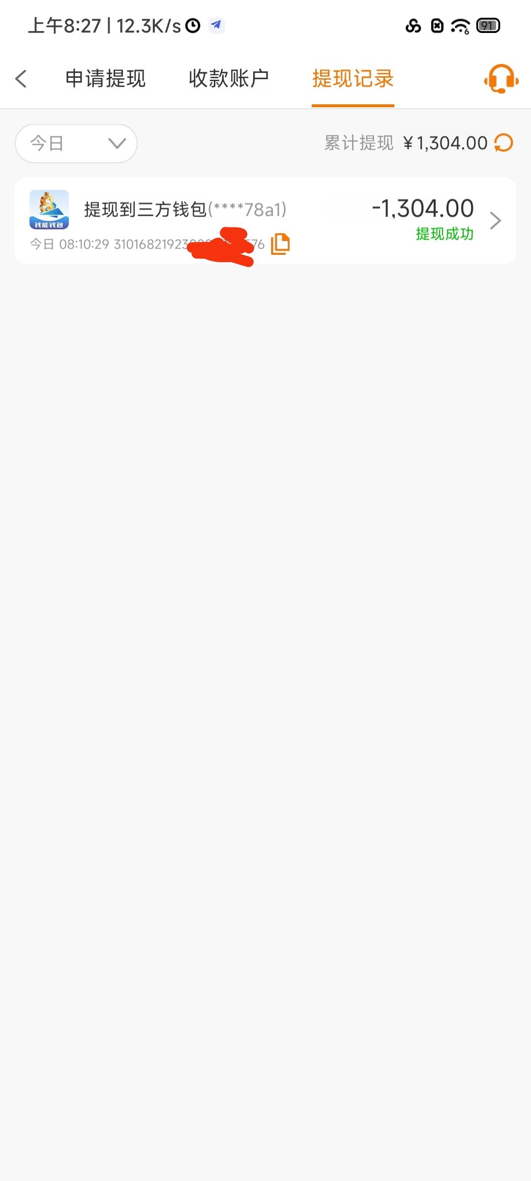 68+68没打出来,送的28提了1300 几分钟就到账了