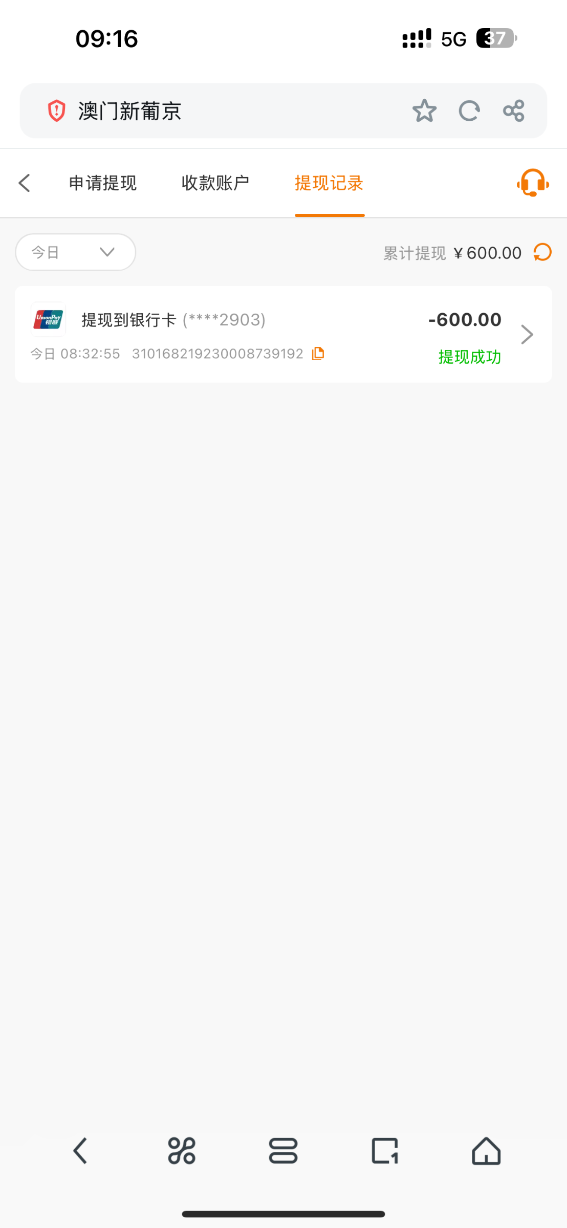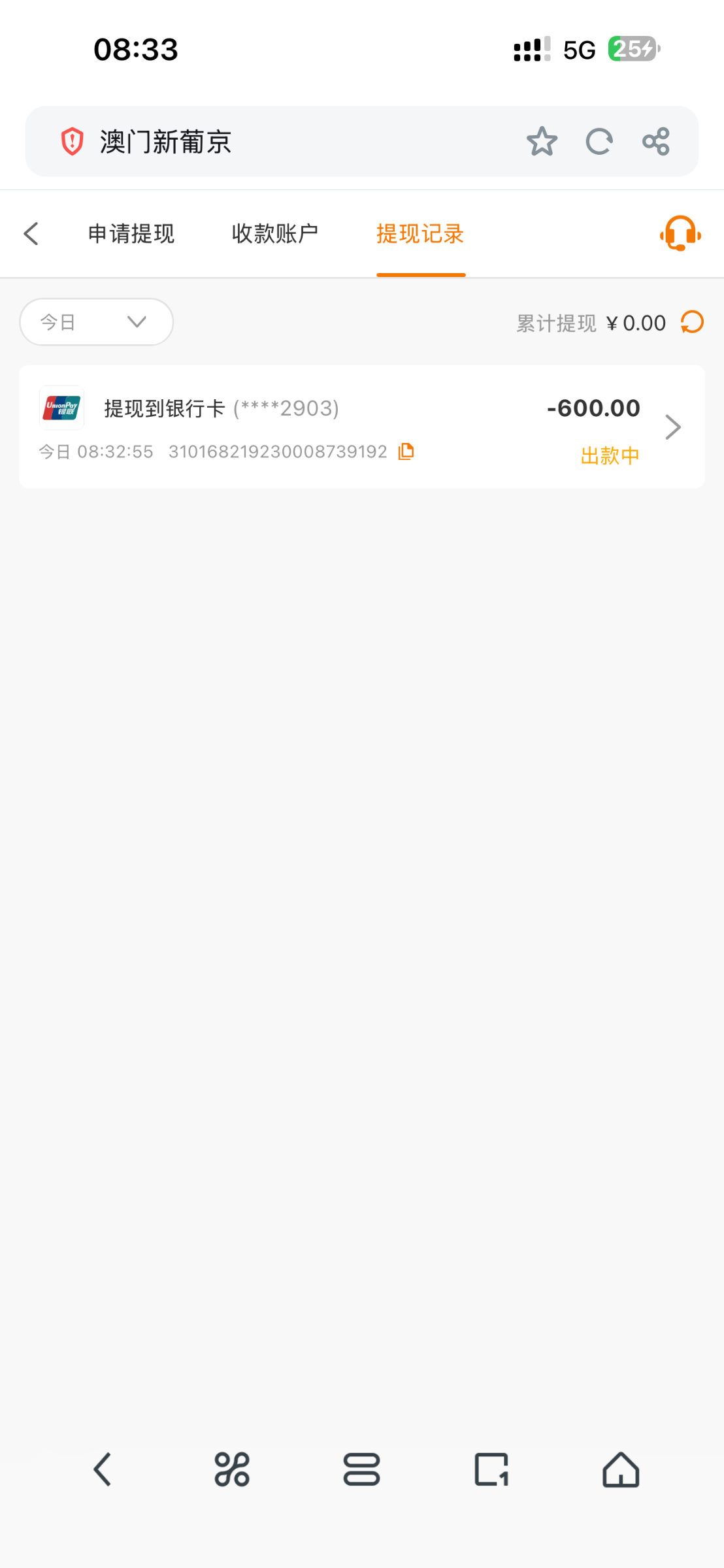 6分钟了还没到账估计黑了