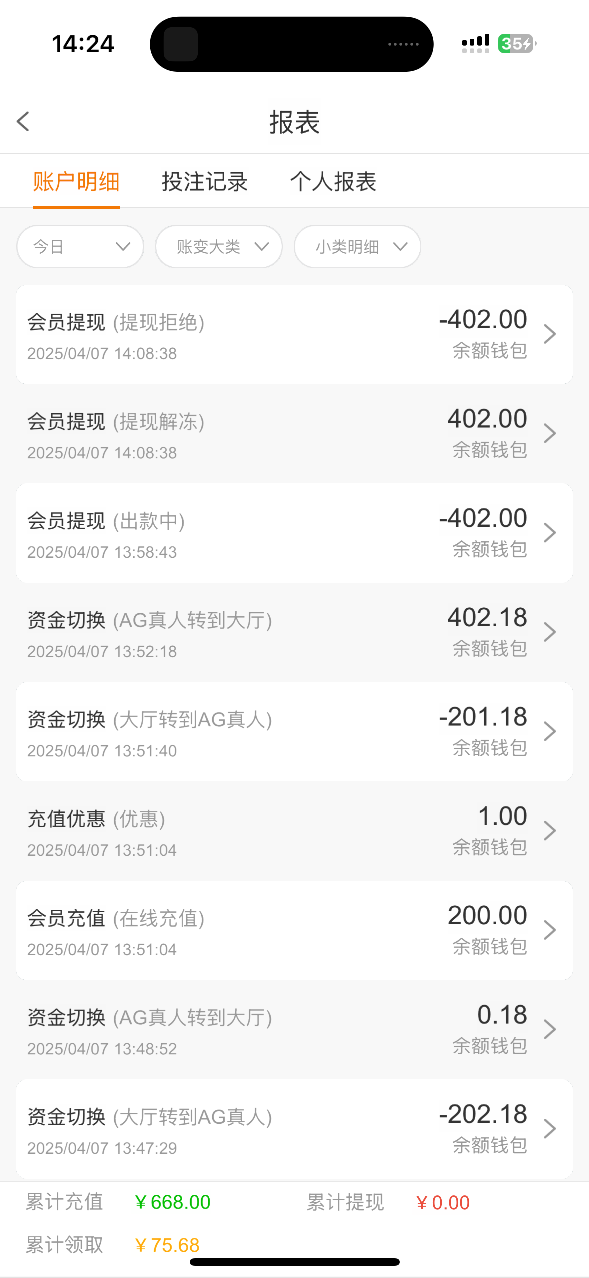 裸打提现都冻结了