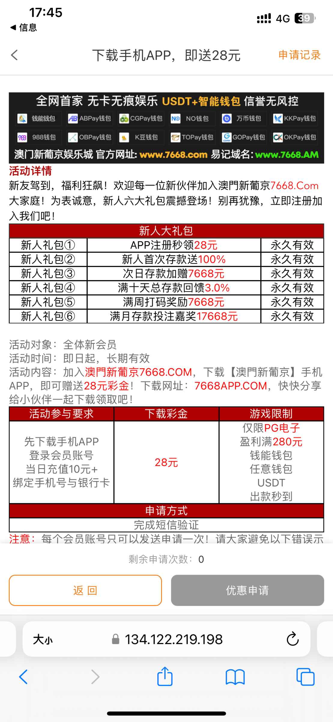 有短信的老哥可以去领取一下,下载app充值10块钱还送28 网址是766888.loan