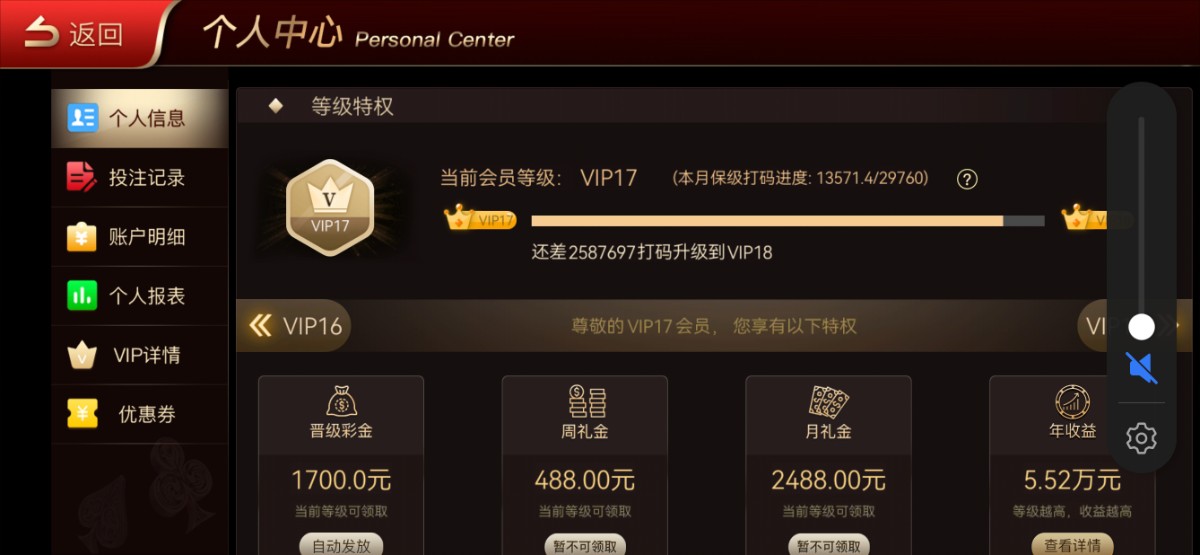 这个逼现在啥福利都不给了,每周每月领的,去玩胡了和捕鱼财神,没水。这么高的等级,有97高级别的,你们都是怎么把周月彩金搞下来的,分享下