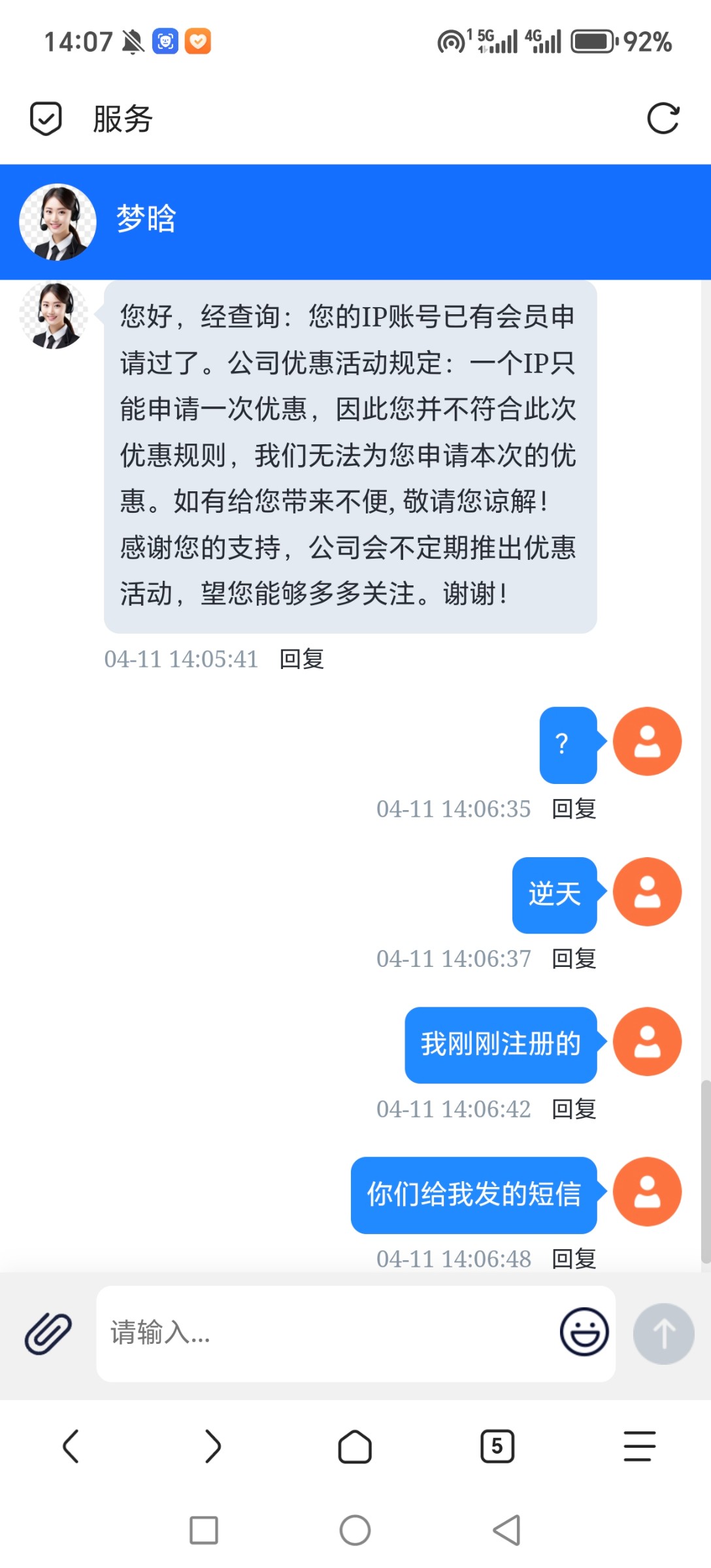 好假我上一个月收到短信去客服那里申请让我发图发完之后让充值