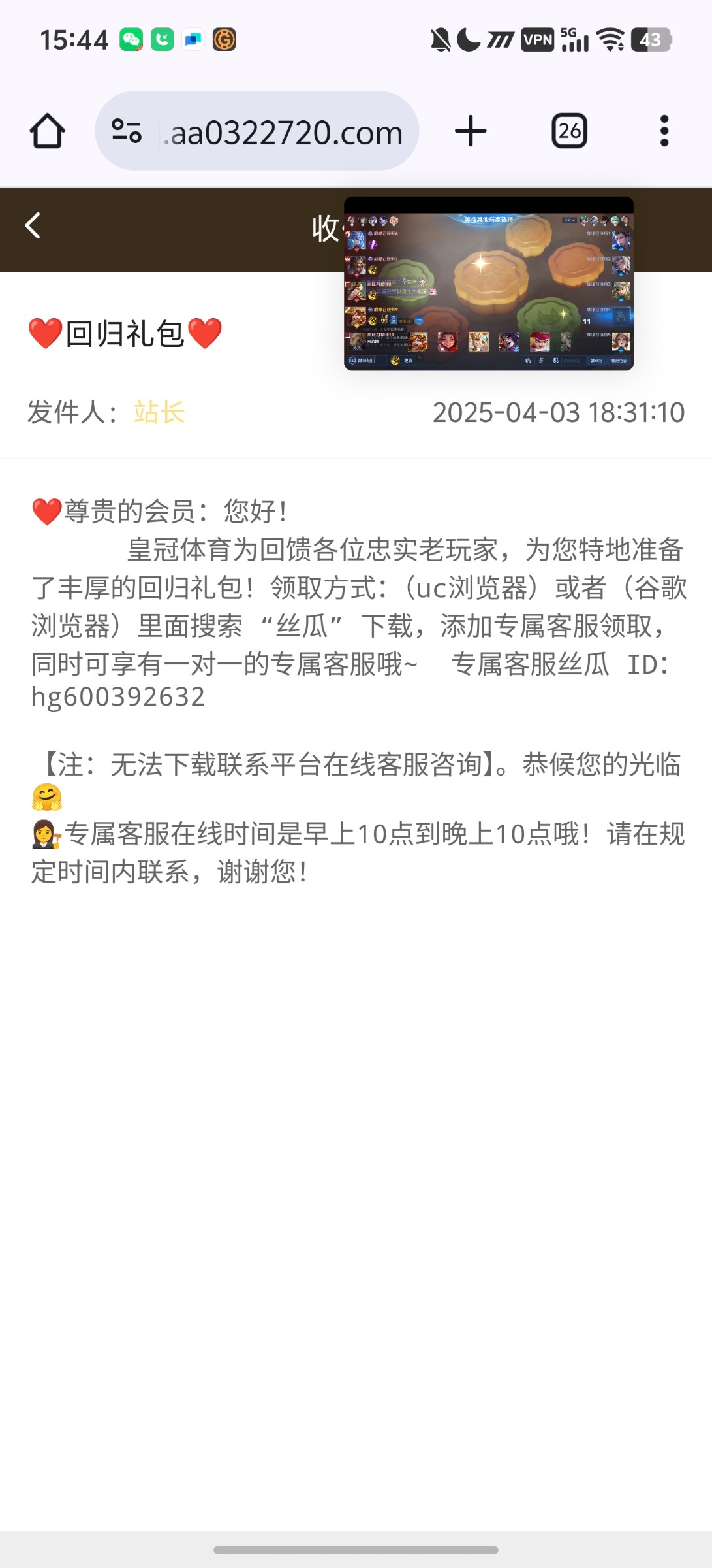 玩两年了 没见过这种战内信