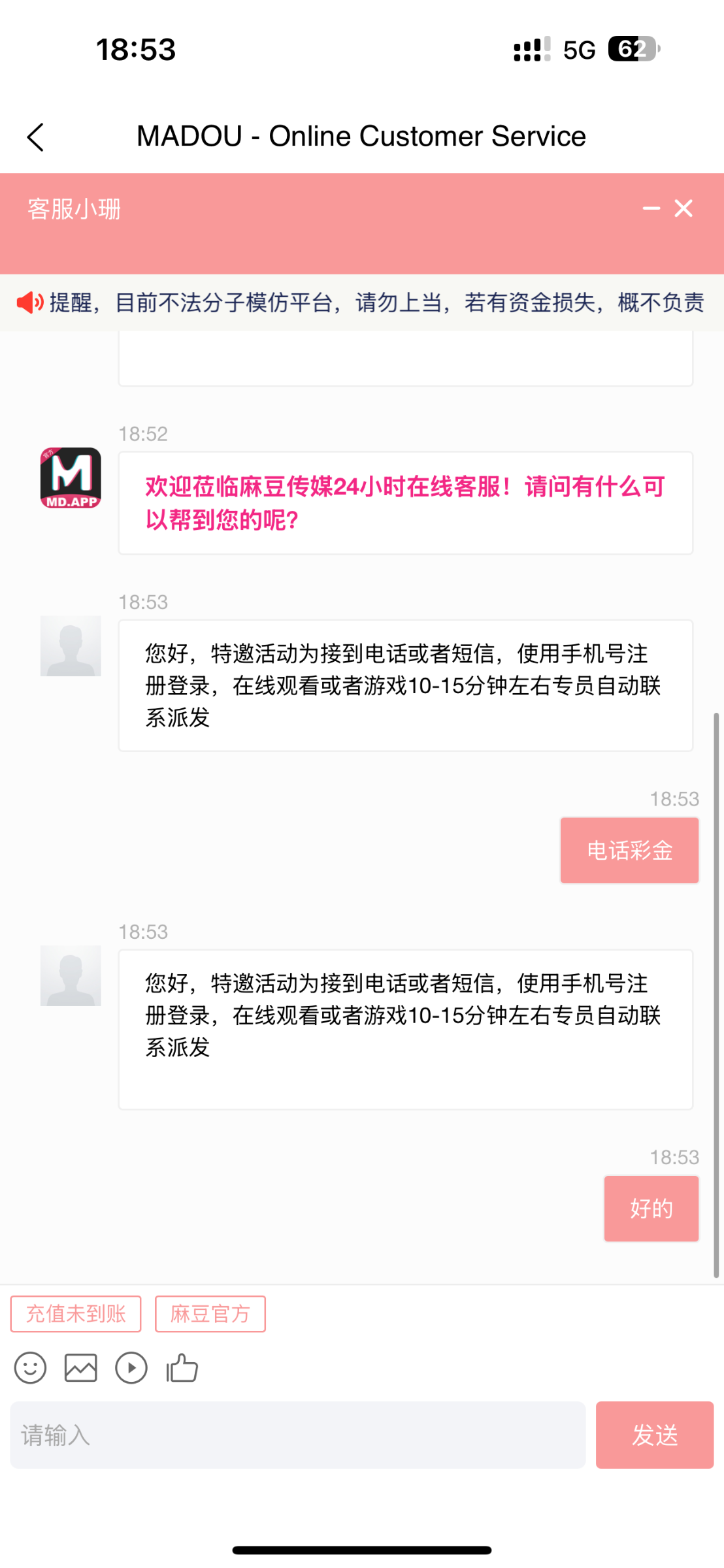 玛德,我也接到电话了。说给我送。一个小时了。没到账。日