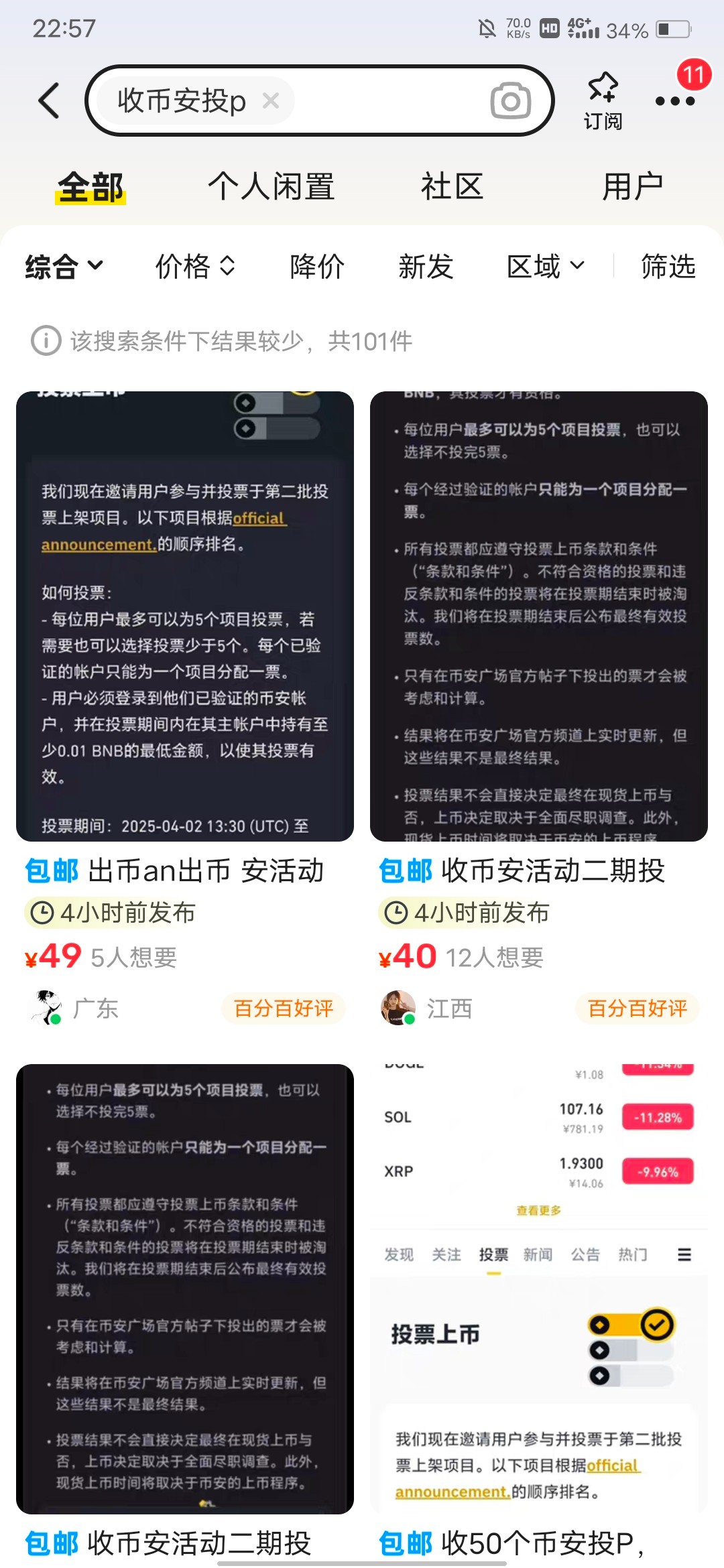 闲鱼上搜索收币安投票,把票改成p,因为咸鱼会违规。