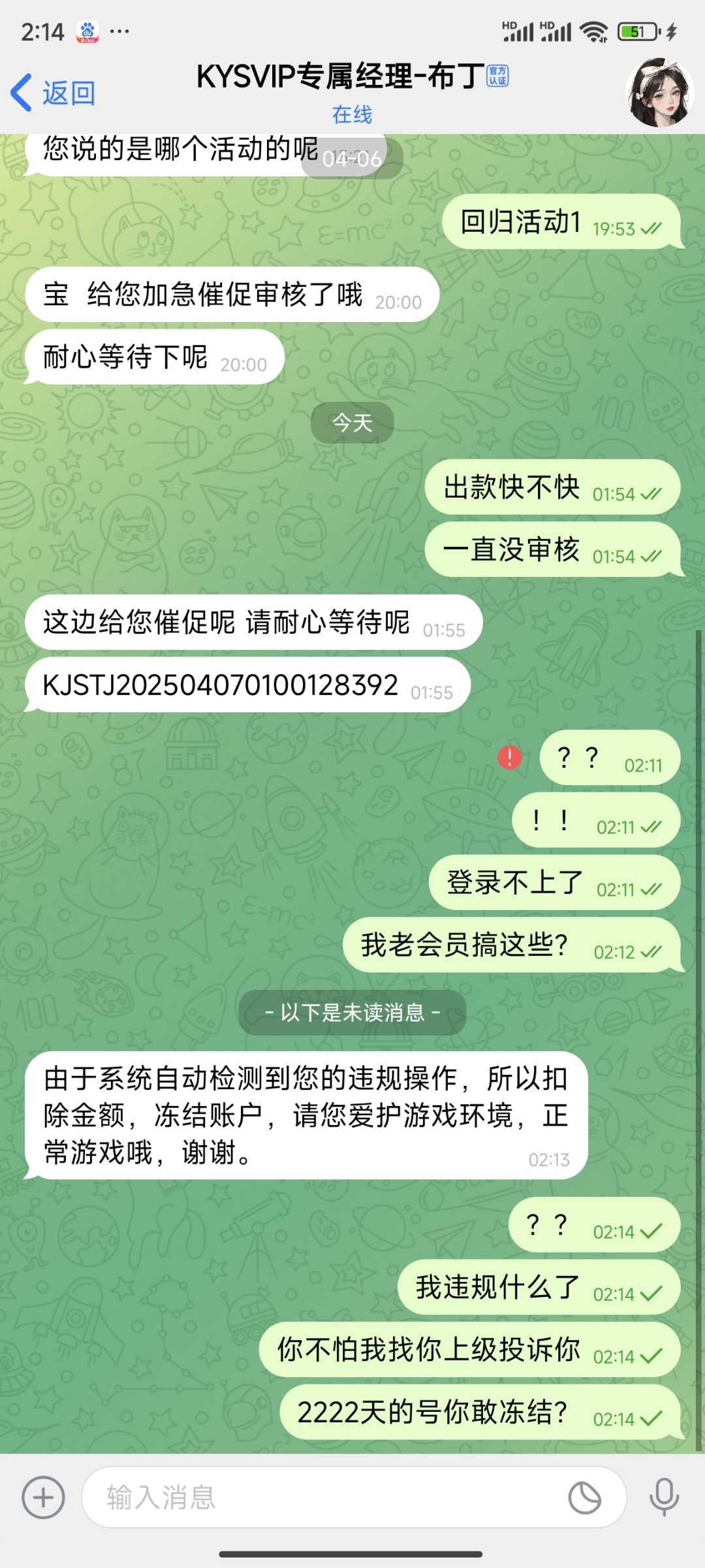 我亚博升级开云的号也二千多天亚博输了五万多还不是一样冻结
