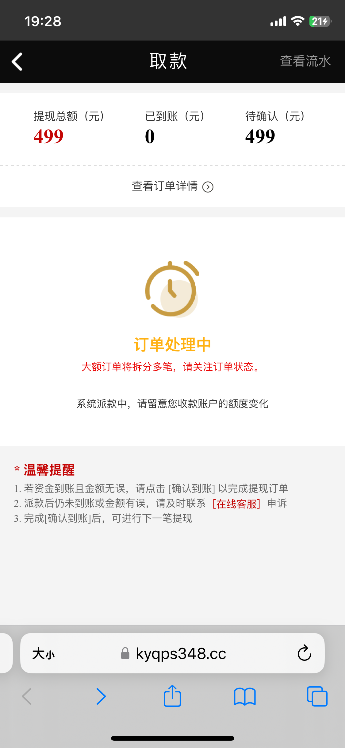 你这个提现到账了吗?我2个小时了,还没有到账,客服说什么PG注单没有更新,等待技术处理