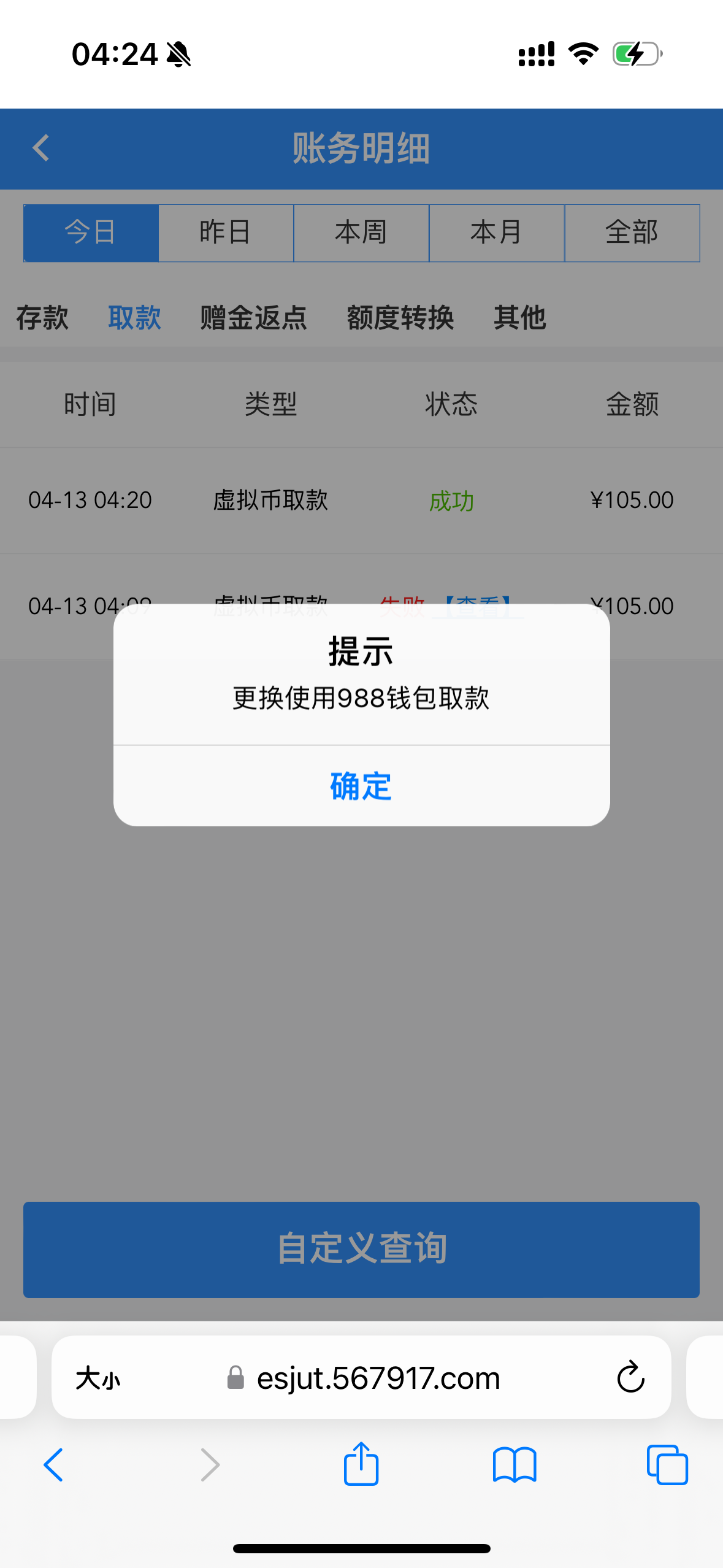第一次提款失败以为黑了,后面叫988钱包提款,秒到