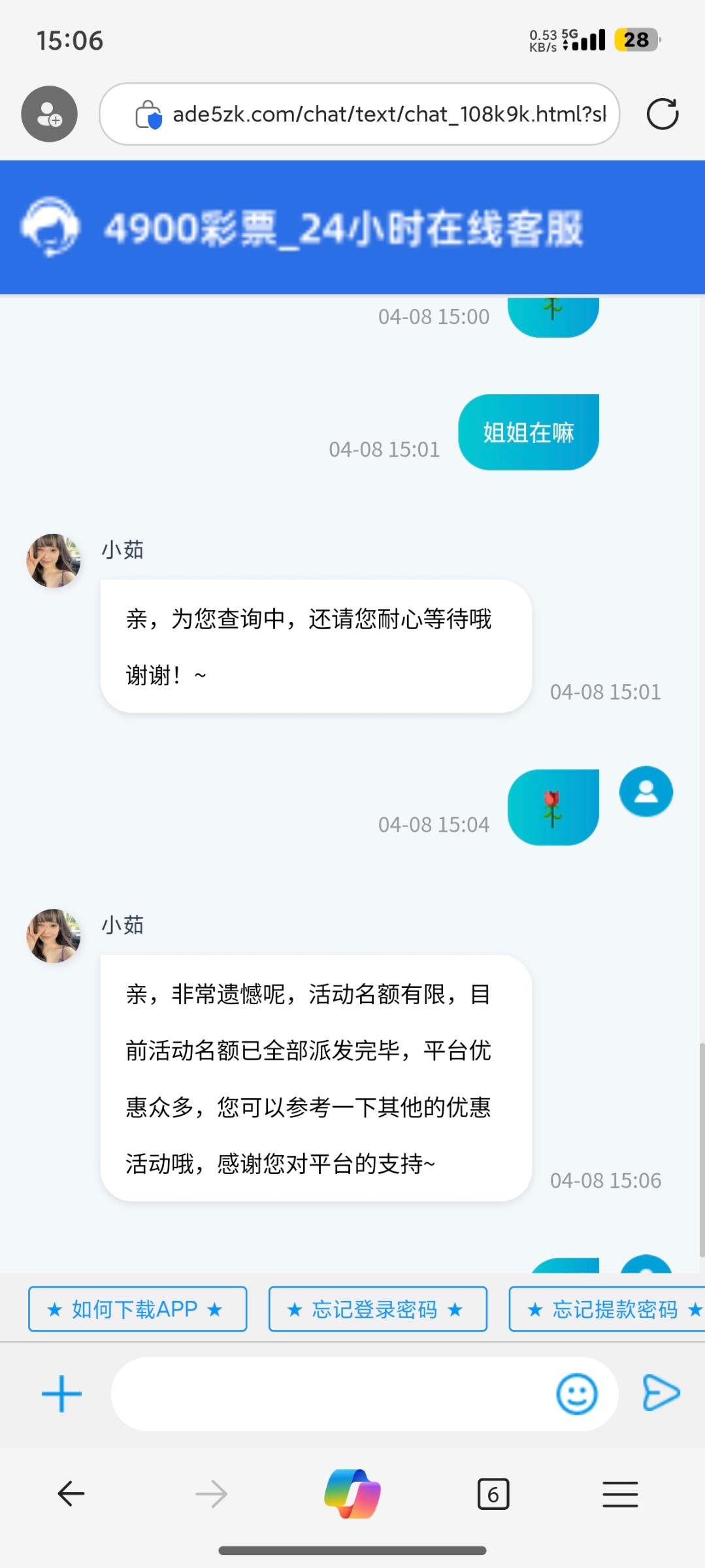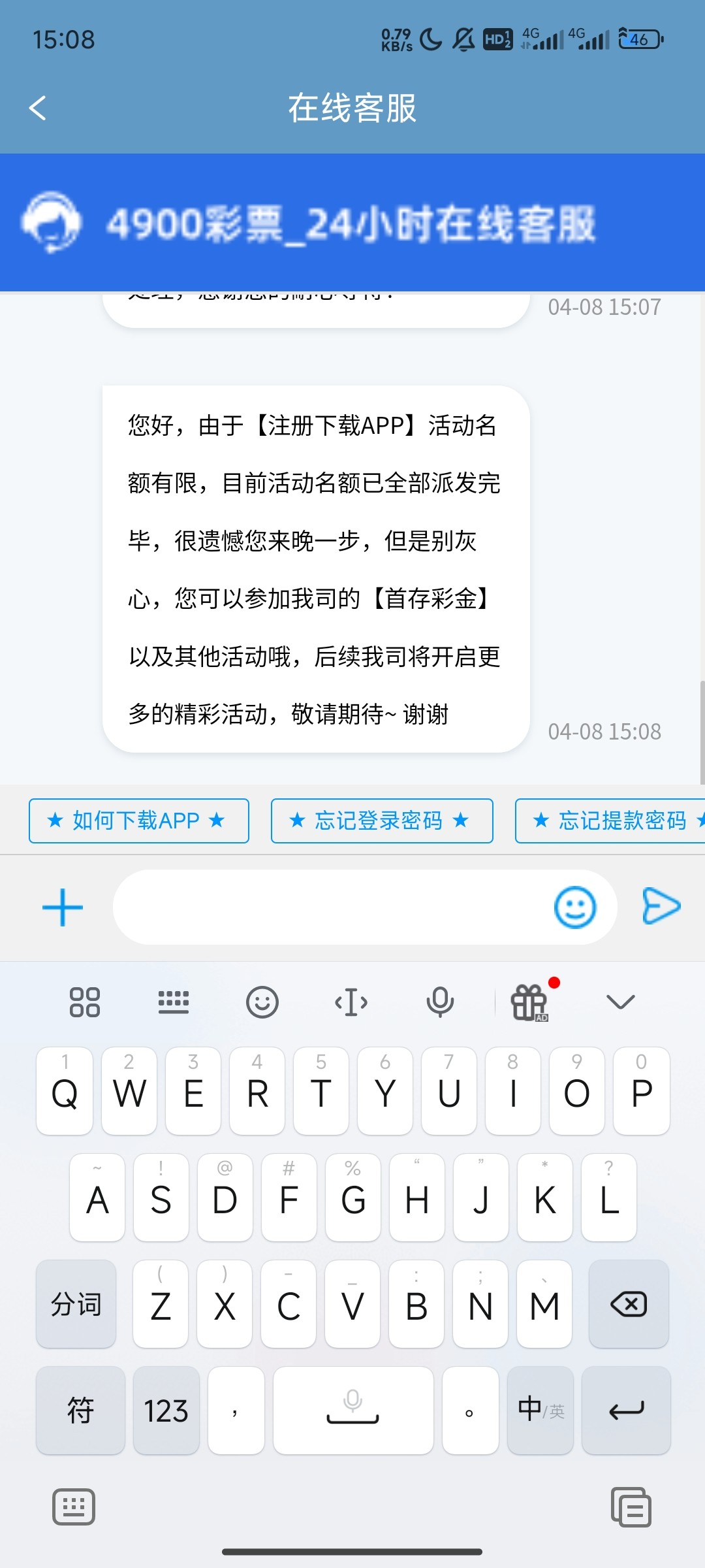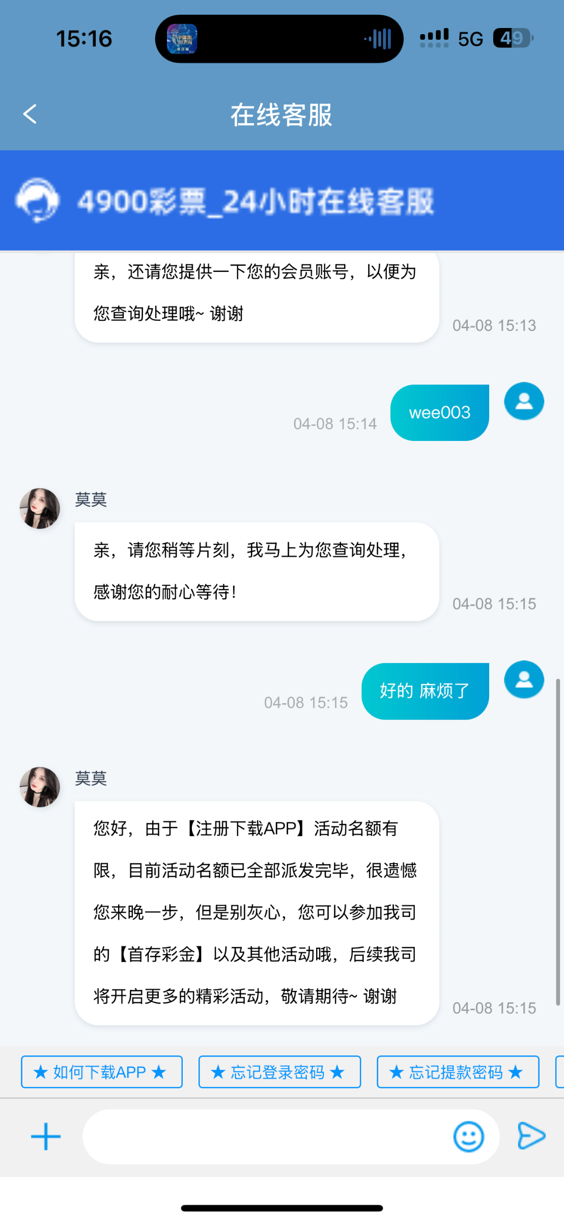 您好,由于【注册下载app】活动名额有限,目前活动名额已全部派发完毕,很遗憾您来晚一步,但是别灰心,您可以参加我司的【首存彩金】以及其他活动哦,后续我司将开启更多的精彩活动,敬请期待~ 谢谢