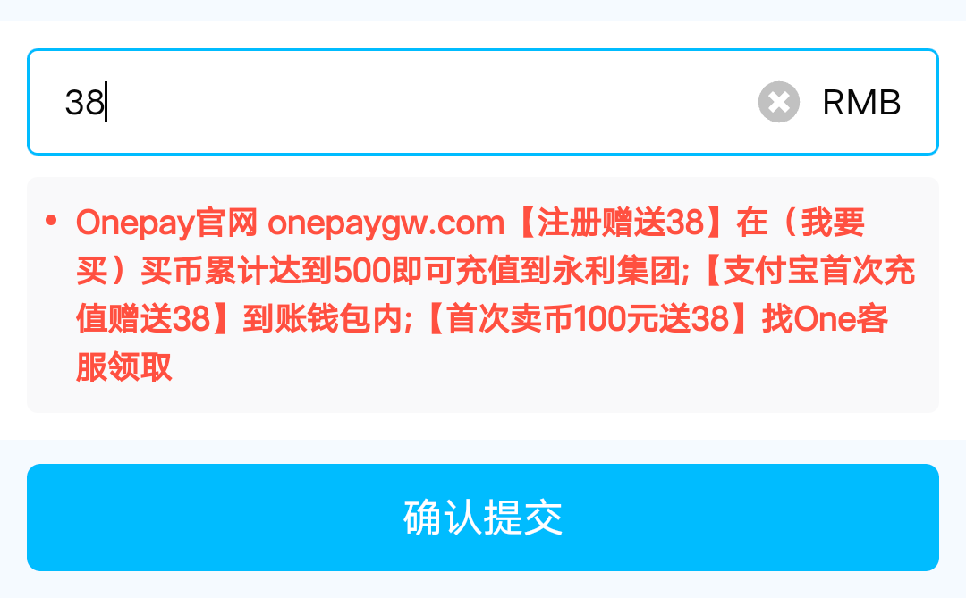 注册送38,支付宝买币100送38 地址 https://onepaygw.com/