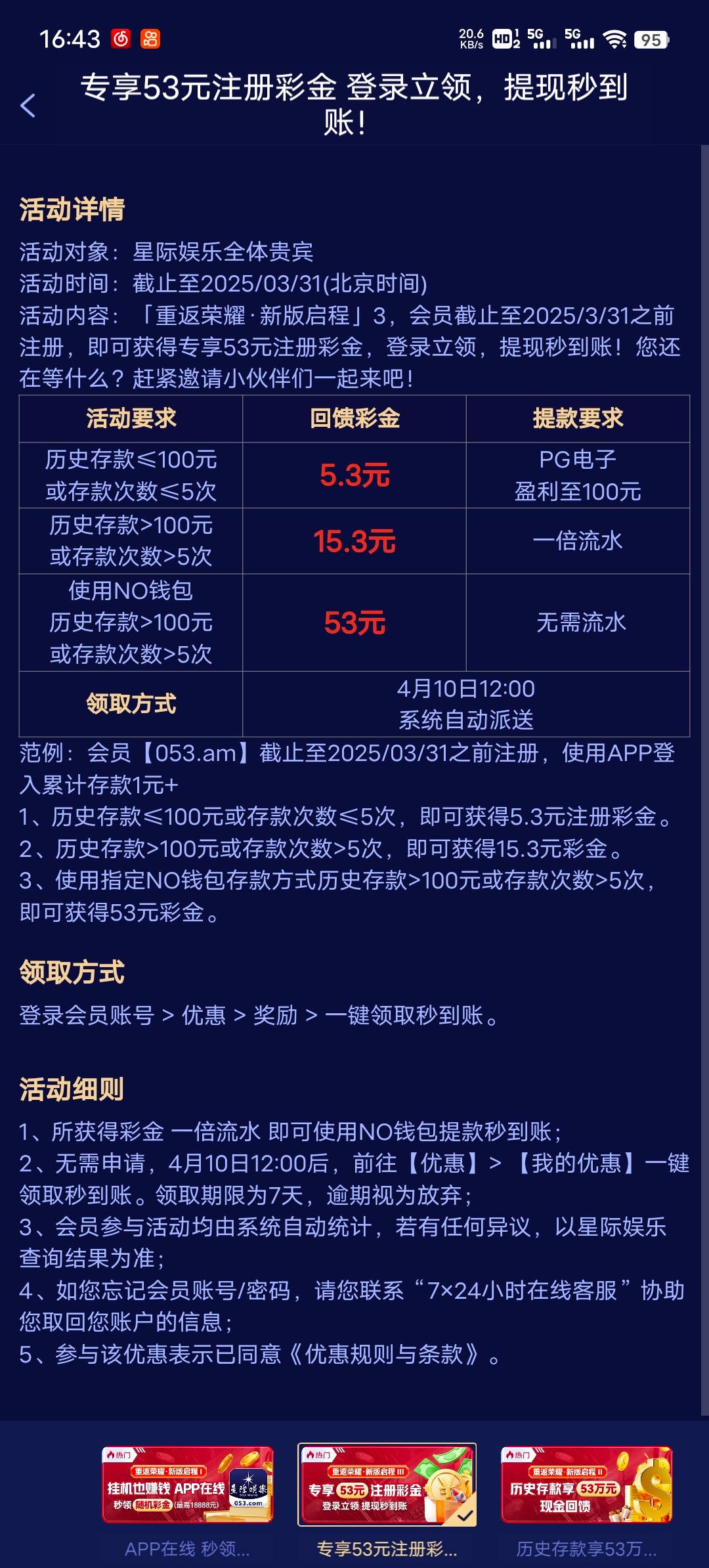 4.10历史注册回馈 4.8历史充值有号的上 地址 053.com