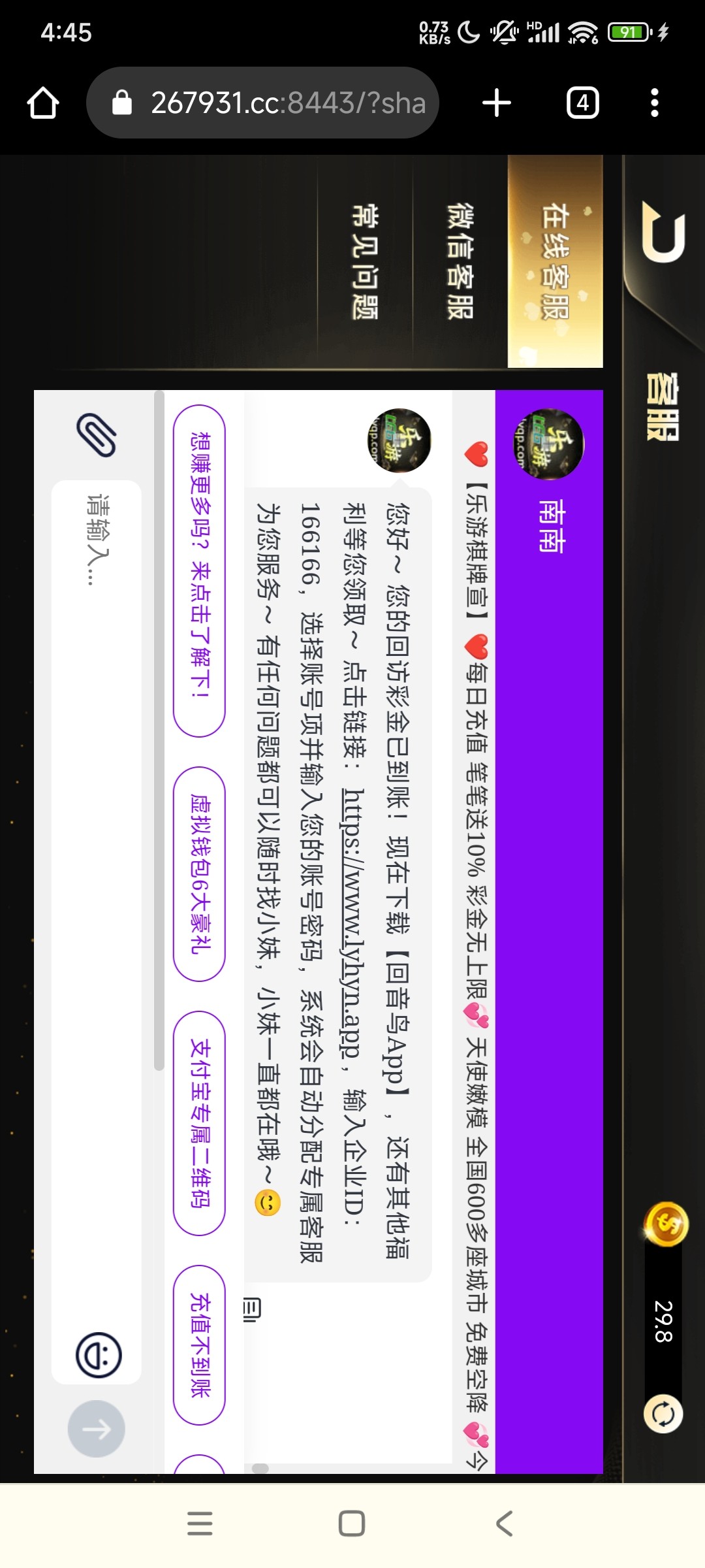 267931.cc 看看有没有漏接电话,去找在线客服申请电话彩金,我接到机器人电话去找客服领了29彩金