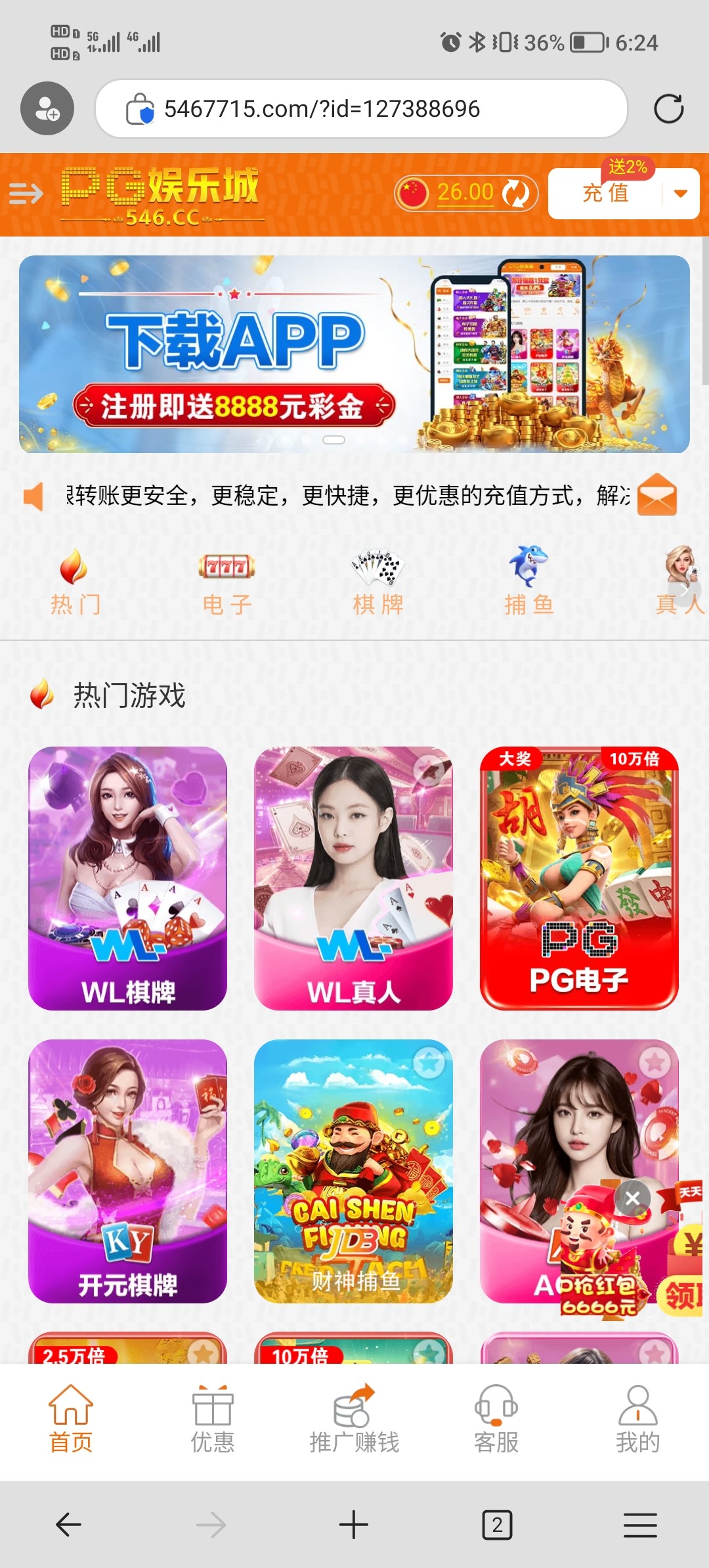 刚刚打电话来的 上号就有26说打到100就可以提现 网址 546.cc