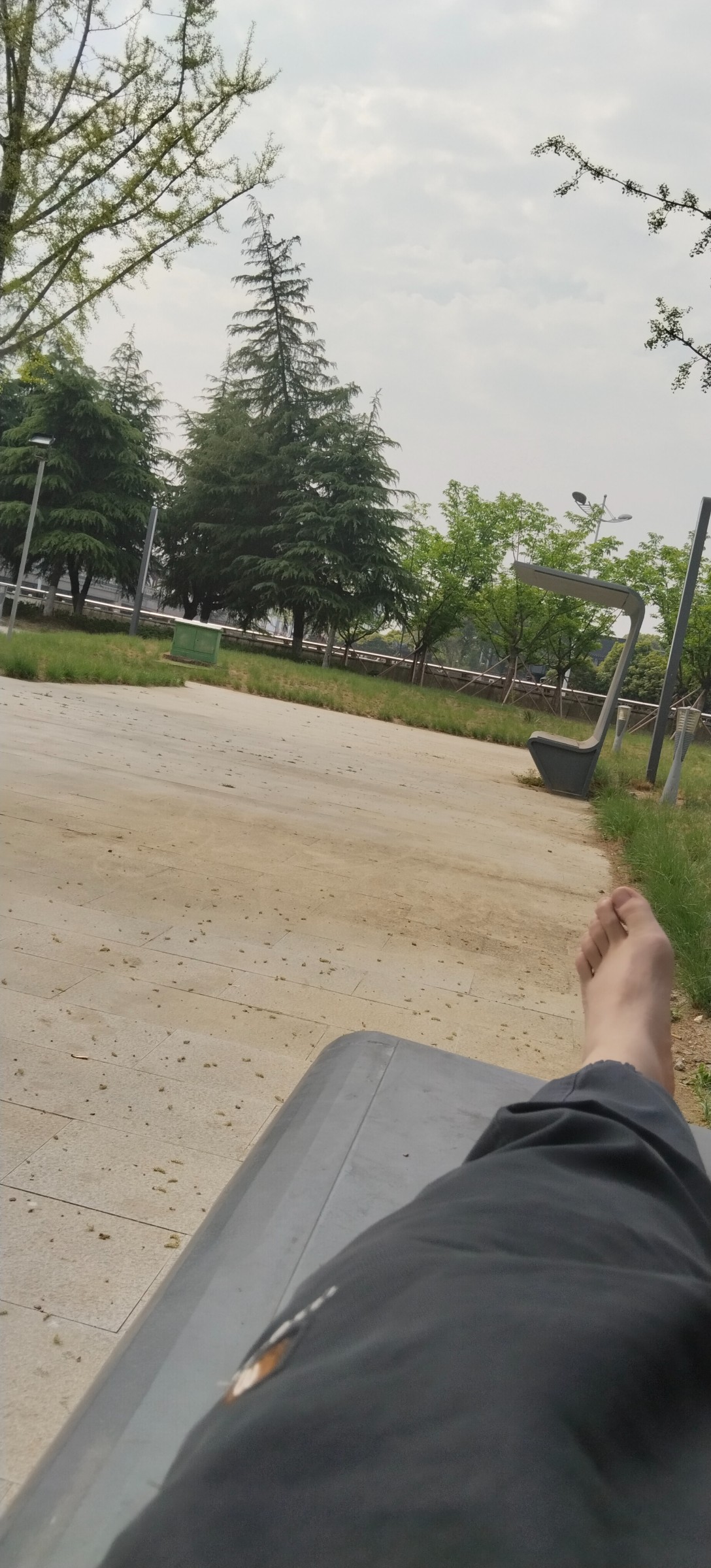 老哥们电梯井被赶以后今天找了公园睡觉现在刚刚醒也是美滋滋的睡醒了,就是天气有点热,刚刚睡醒好舒服昨天一夜没睡