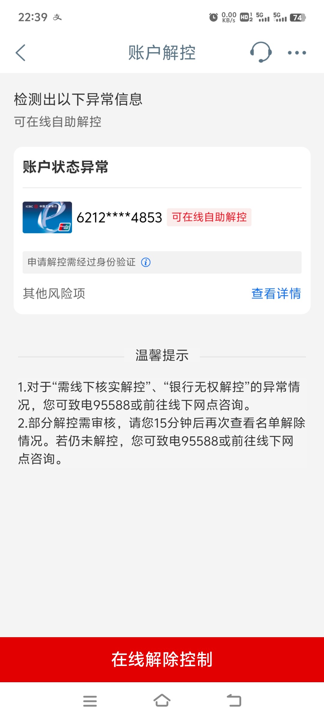今晚刚柜台去解,和你一样,手机银行解了一个星期没反应,到柜台就身份证,秒解啥都不问