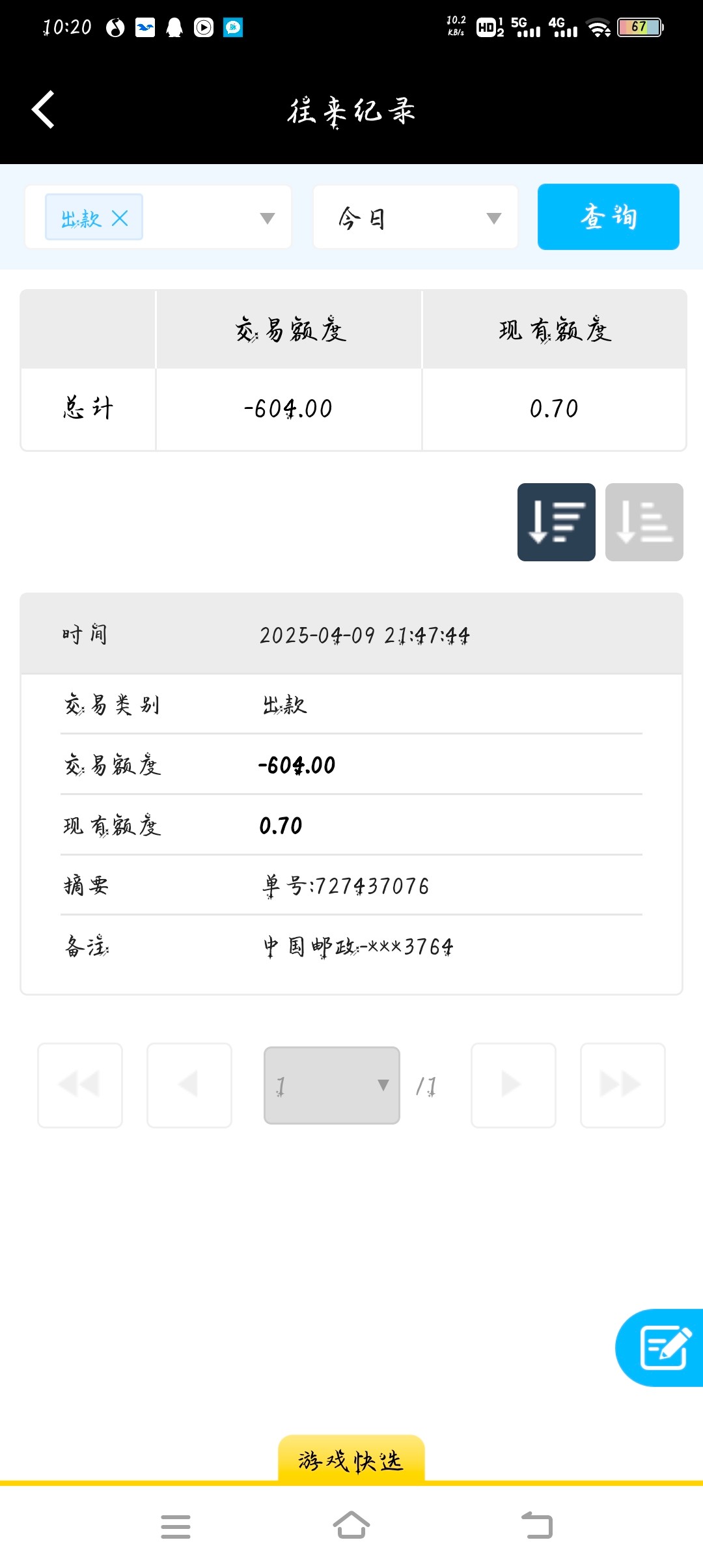 已出款604元,谢谢楼主