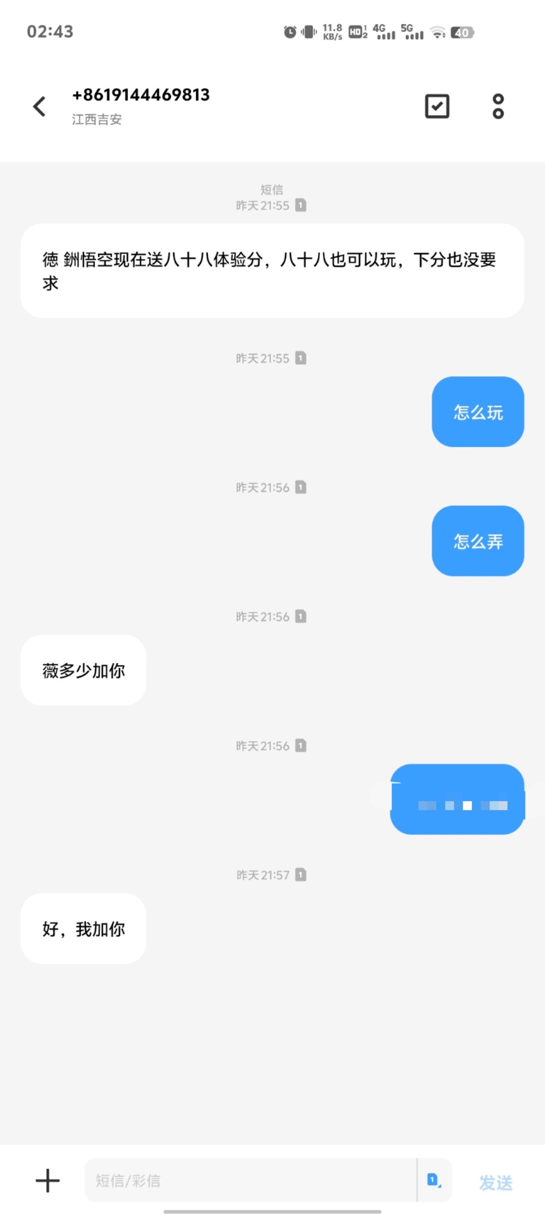 我收到短信特邀都是叫我冲值