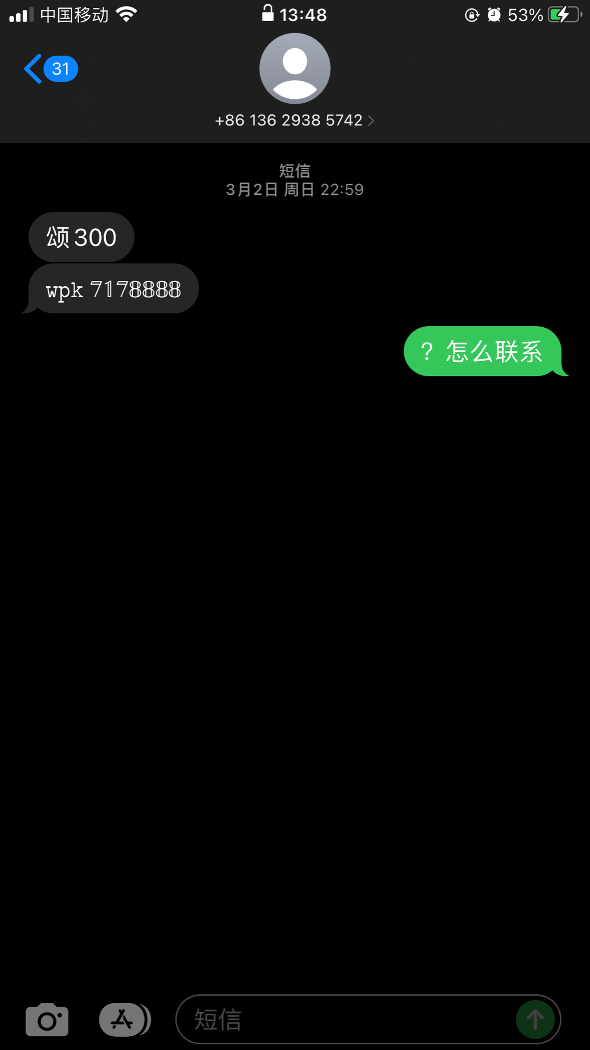 发短信给我送300那种不回信息艹了