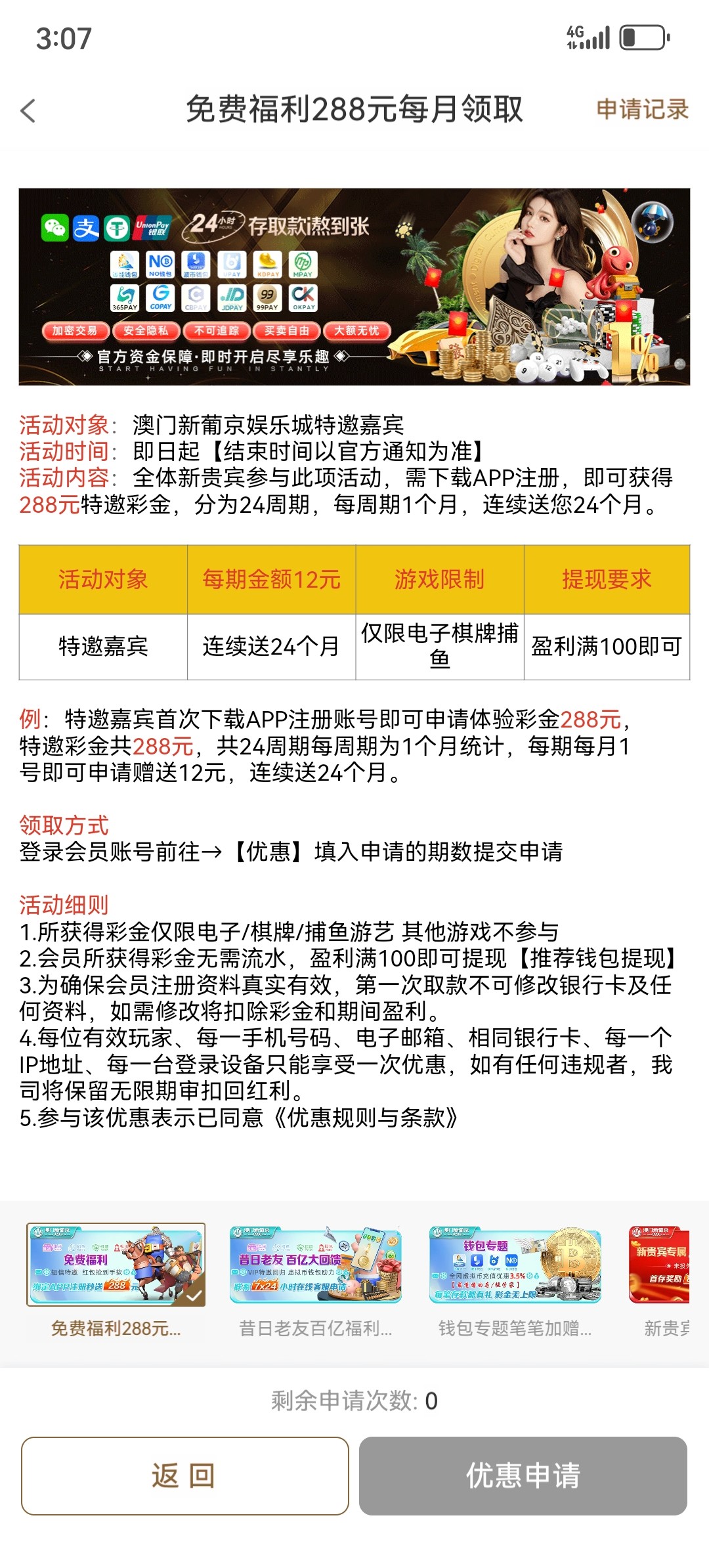 短信特邀288每月领取12我没打出来 希望老哥们多多吃肉 网址 0286.com