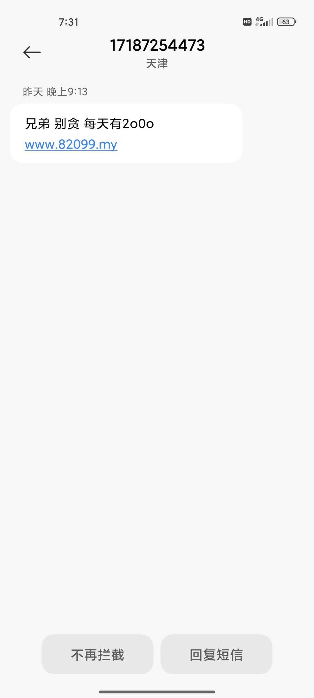 可以碰一下 我两个手机号 一个收到短信 一个没有收到 也碰到了 www.82099.my