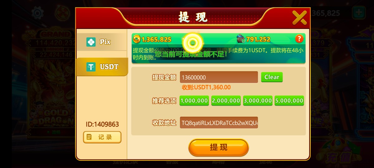 cxm520 ▶ cxm520 没用啊,不管提多少都说请输入正确提现金额,或者是提现金额不足,我看估计要充值,旁边有个79万的,点击显示充值才能提现一定比例 9月前