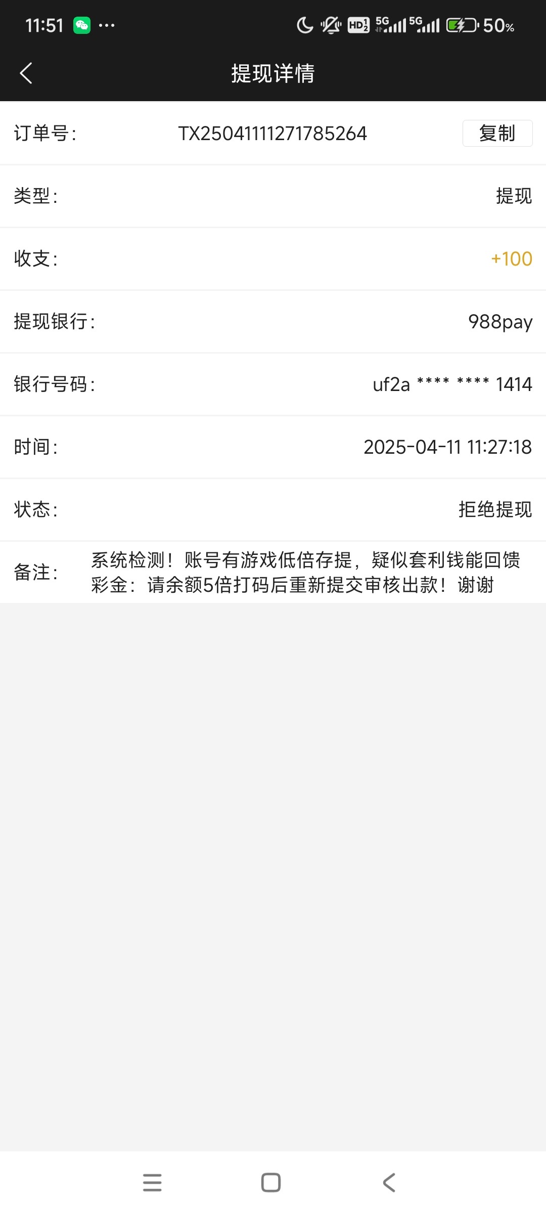 662存了100,一飞冲天磨到700,提现让五倍流水,打了五倍流水,提现1150,又罚五倍水,禁止玩电子。上火,去开元棋牌梭哈牛牛。打到6500,这才提现到账了