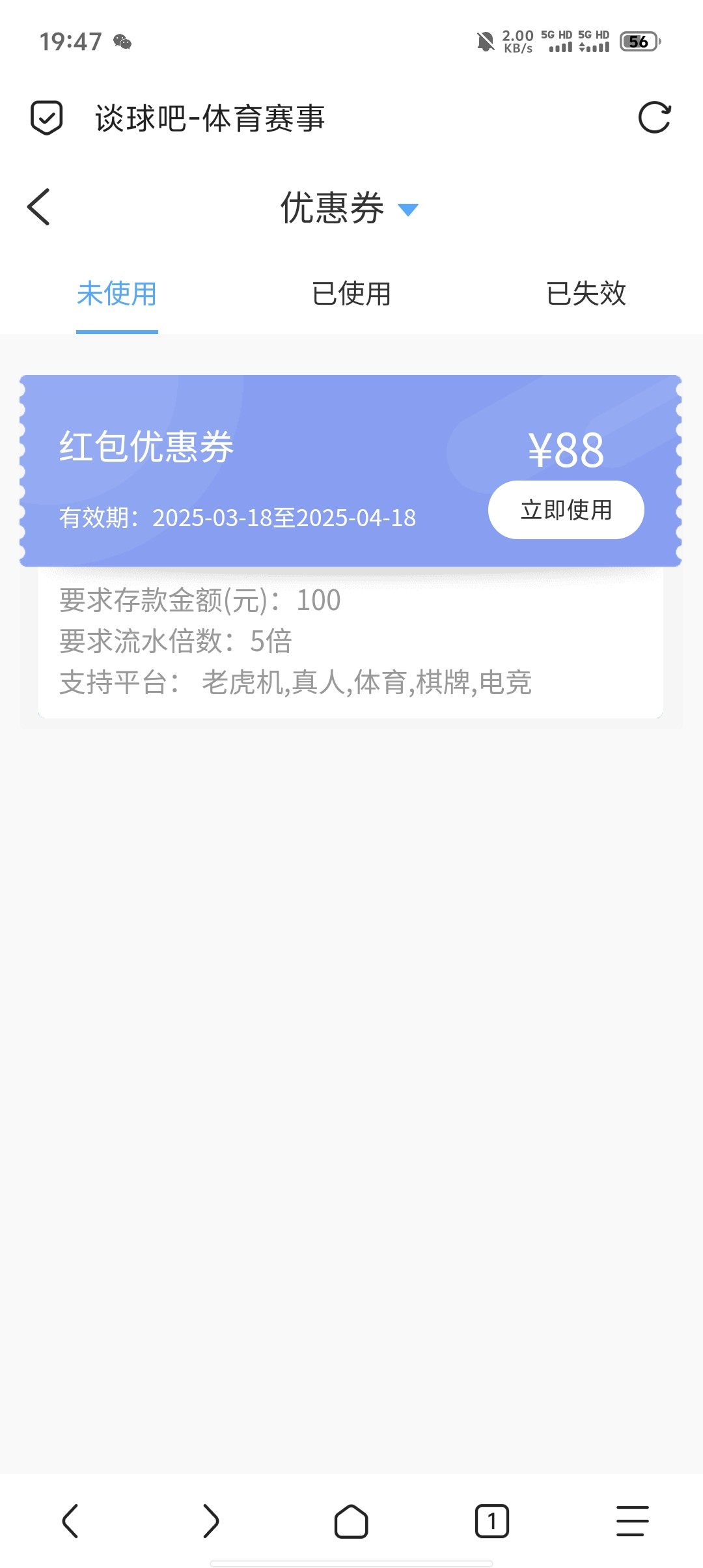 中午就撸了,除了球盟会都有50的一水今天全部套了对打