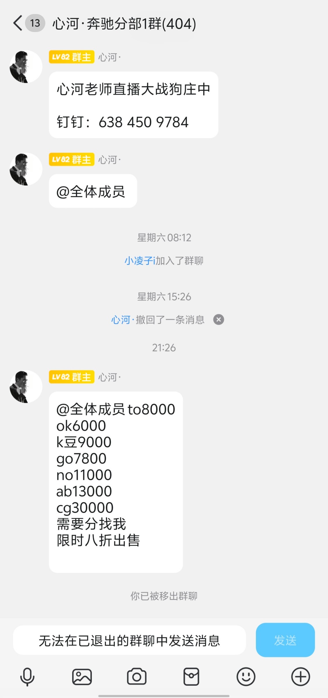 在群里发所有分八折出 给了钱就跑路 目前少说也跑了别人几万了