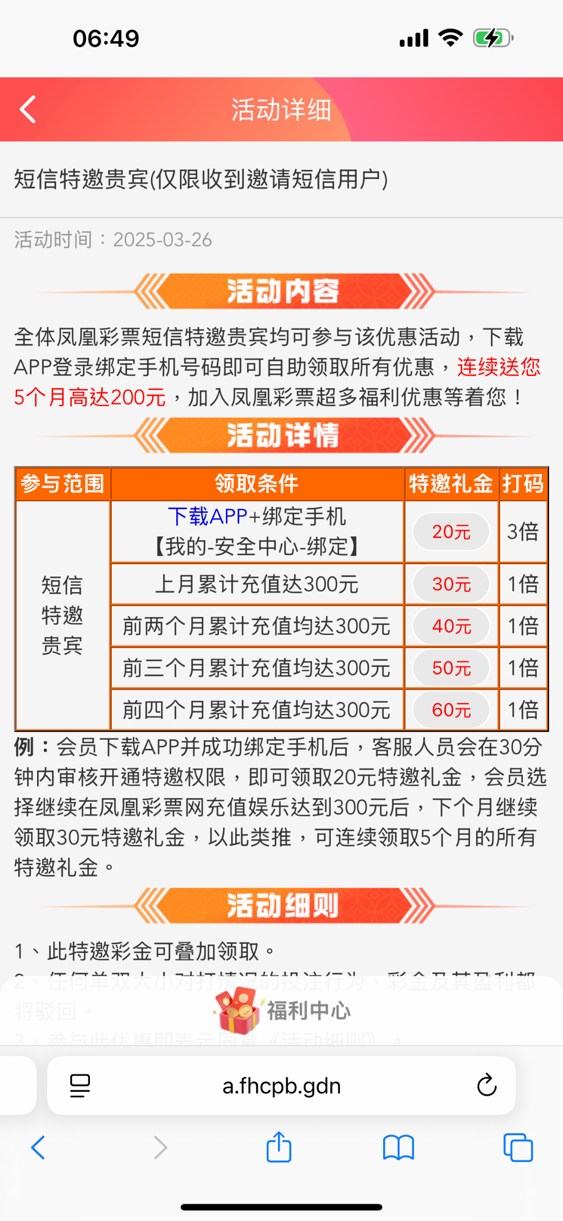注册绑定手机号码送20,在优惠活动里面,等10-20分钟就可以去领取了,不能玩三方游戏,三倍流水提现,三方游戏需要充值,禁止充值,我没打出来
