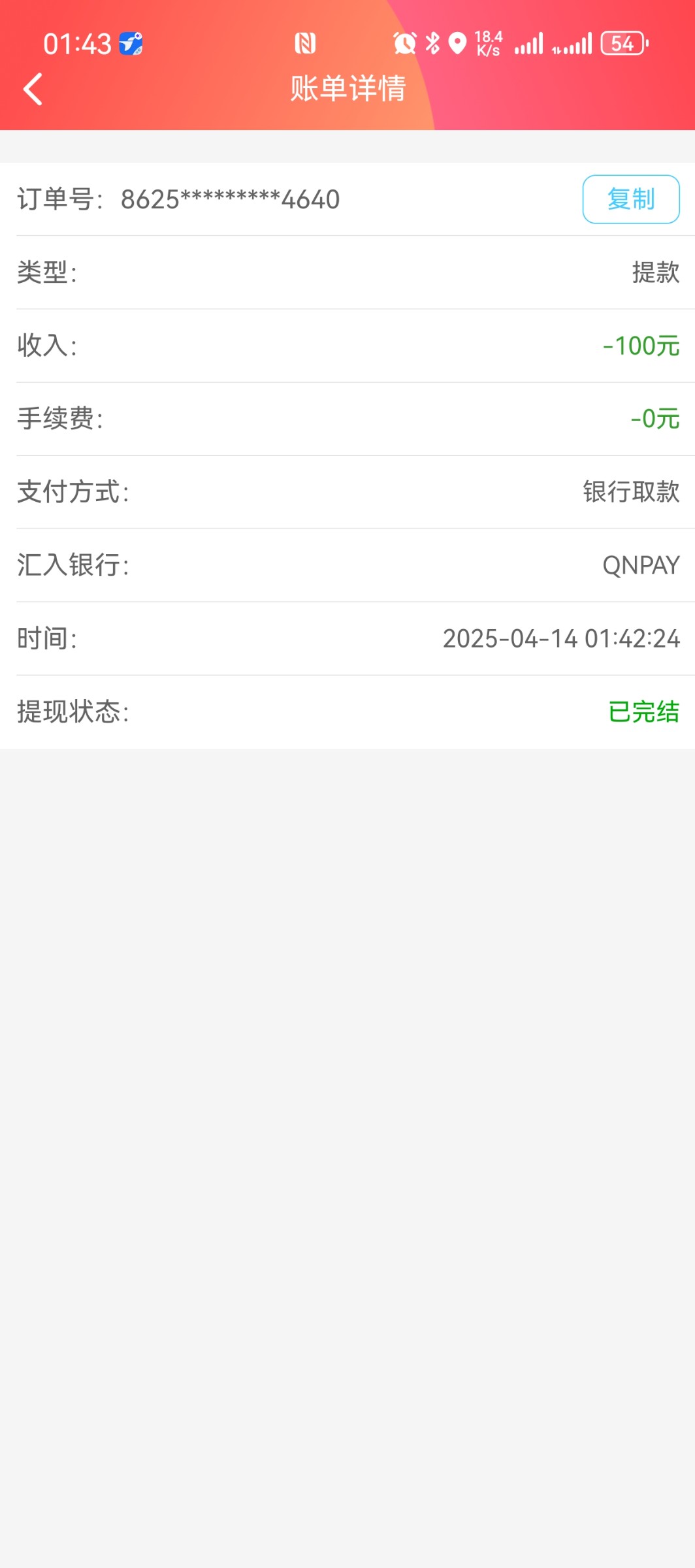 到账100