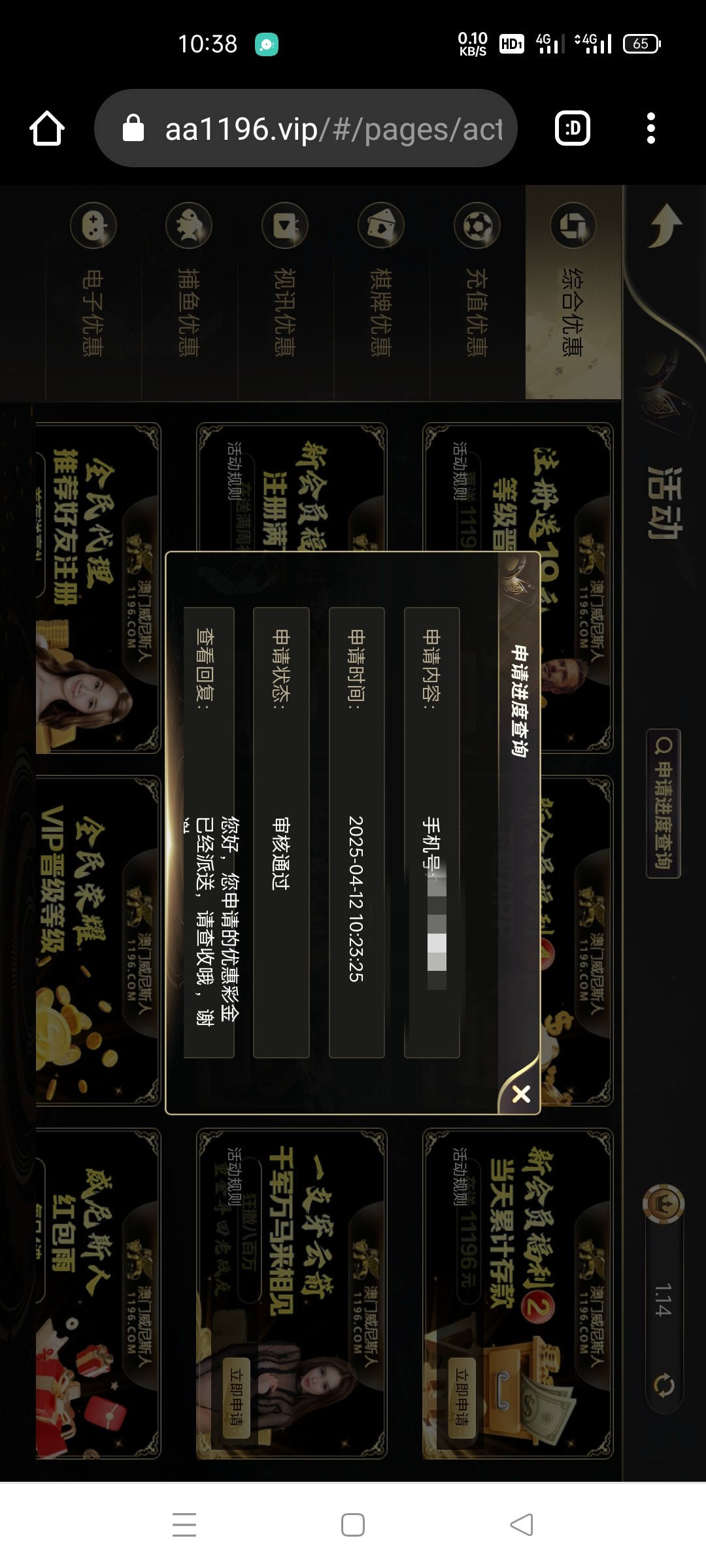 活动页面自助申请,地址 1196.com aa1196.vip 白嫖即可 ,没打出来
