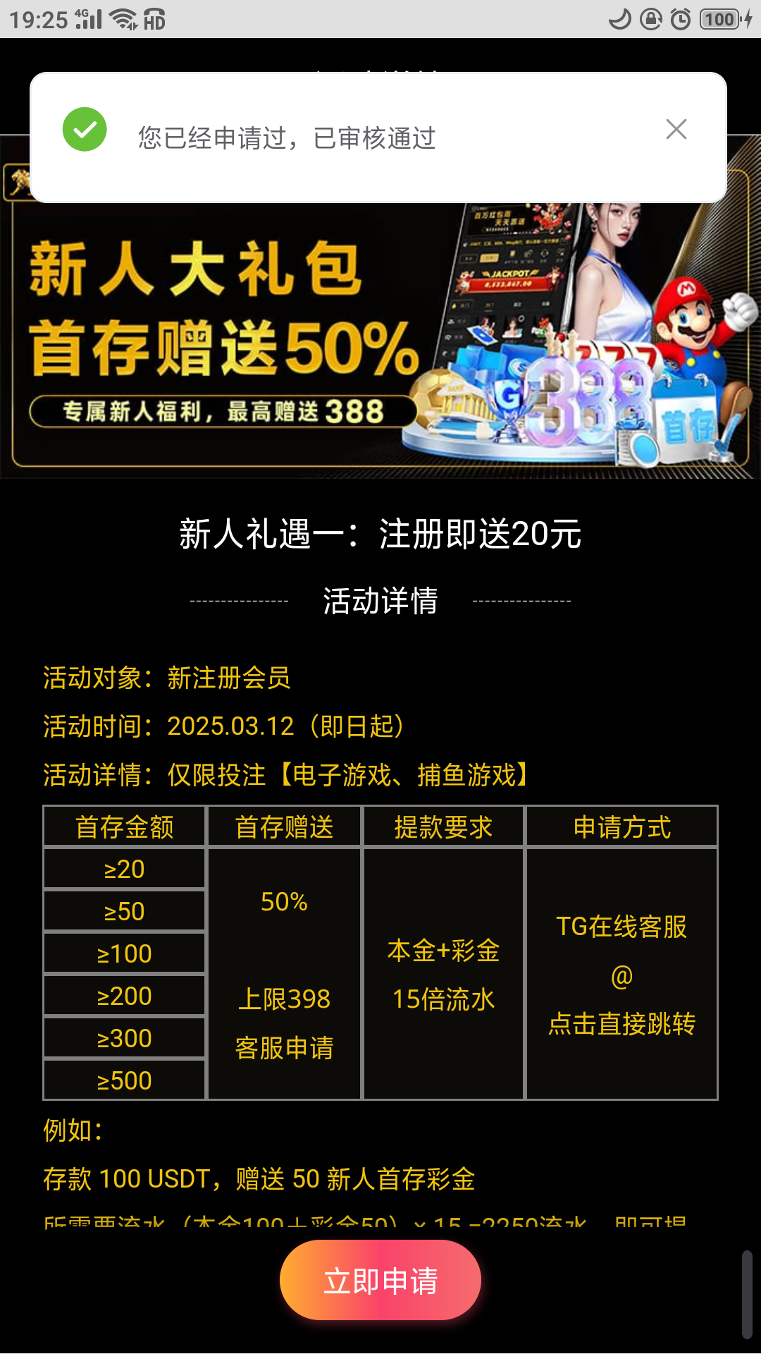 我点了一下申请,秒到。提款自测 5588.mg