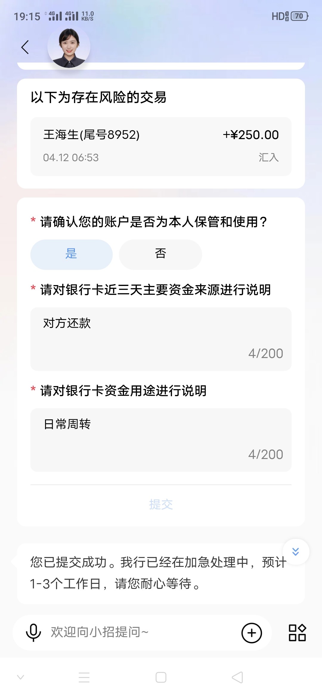 打开户行的电话,找他要工作人员的微信,然后把信息资料都发给工作人员可以线上,我上次就是这样