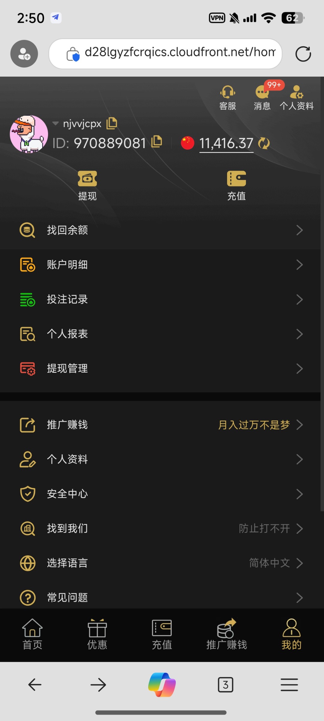 这网真牛逼,我用同一个手机号注册了两个账号,前一个账号密码被改了然后同一手机号注册新号提款168秒到,最牛逼的是存款每笔送3%,这种逼台拉电子不可能有水