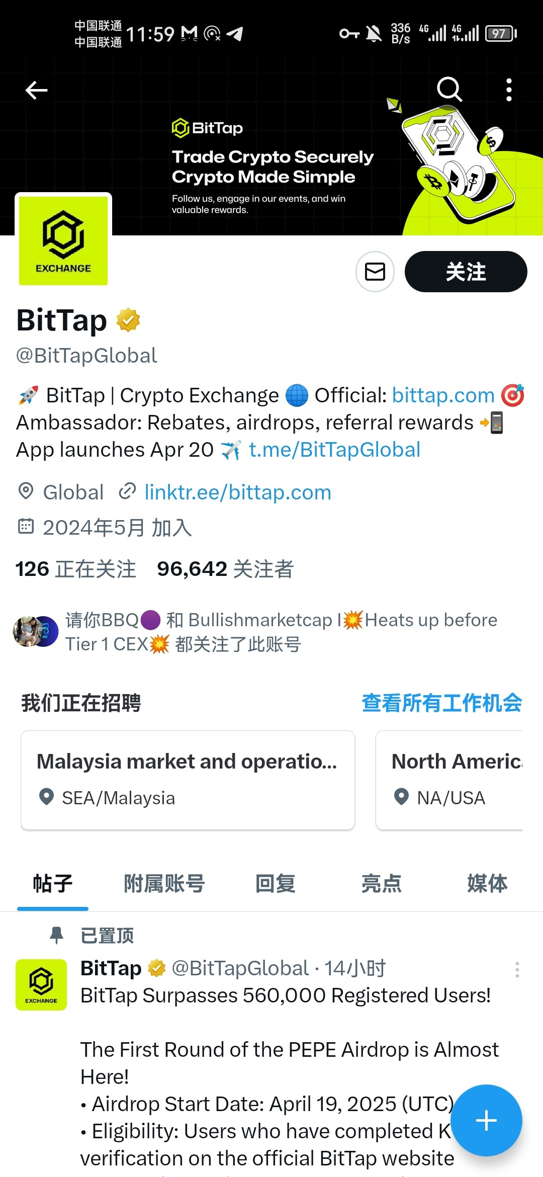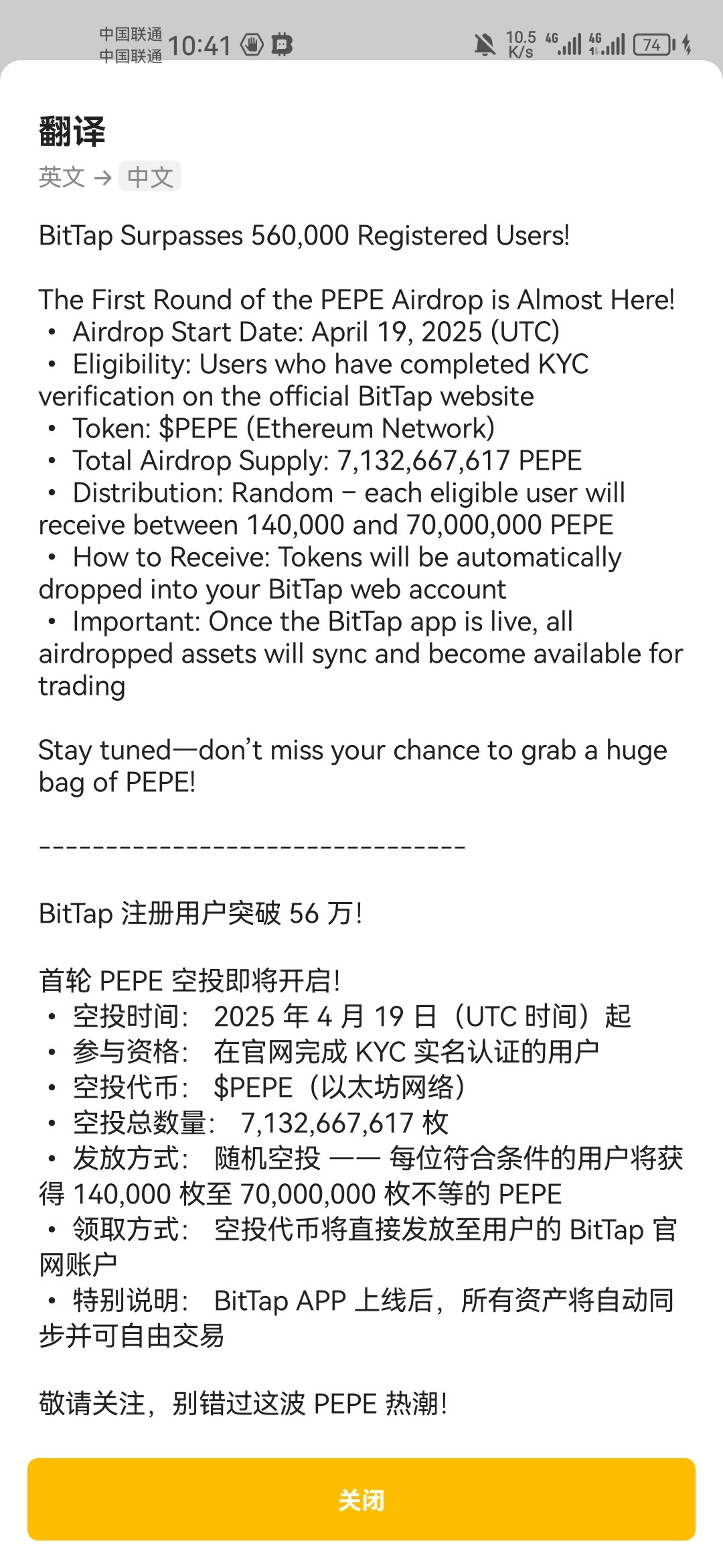bittap,新人送10油体验金+空投代币+100油包赔券。合约金可以自己打,多号换ip对冲百分百出的。直推奖励10油,间推5u,三级3u,直推奖励是真金,需要自己或者下级达到交易量激活提现,首批190000蜗牛币场外50-100¥无限收,第二批19号开始空投,最高价值5000u的pepe⚠️注册KYC通过之后绑定sol钱包地址即可,后期还有其他空投,不要错过,20号正式上线。