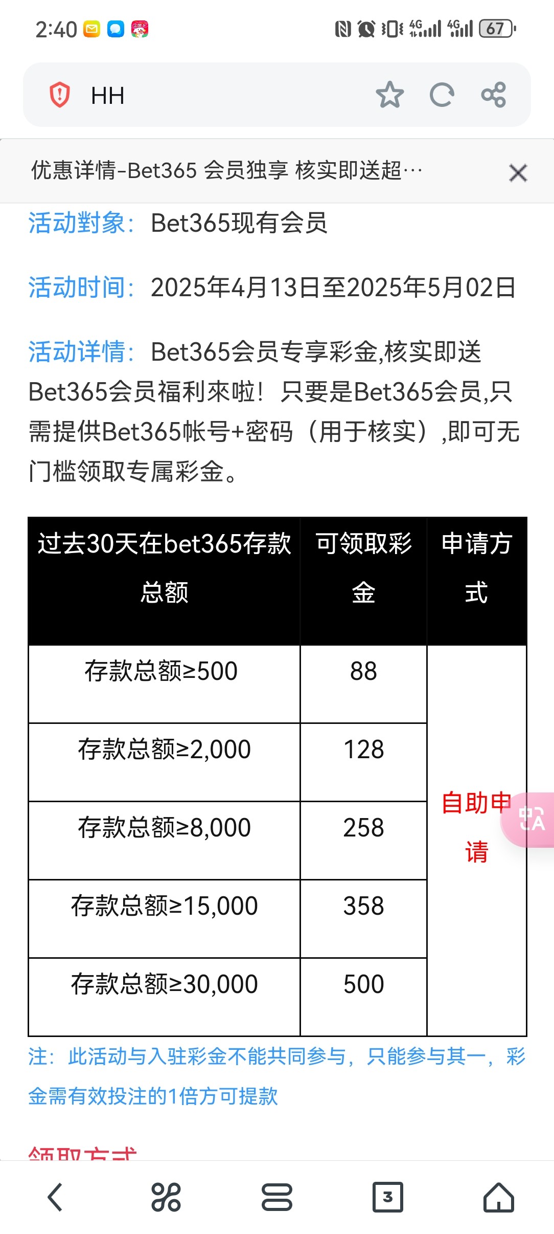 在bet365最近30有500存款以上的可以去申请了。