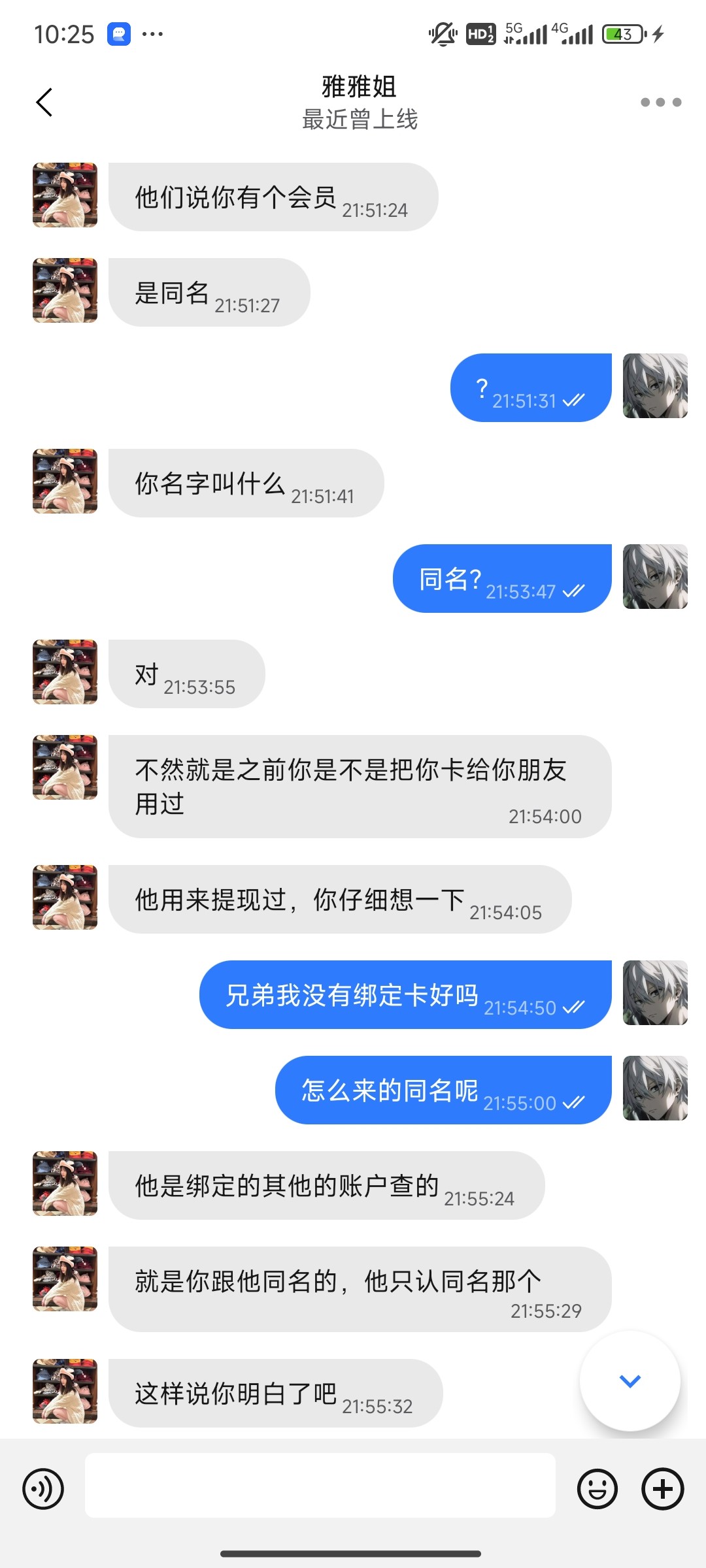 电话来的说存送,旺旺客服充值了,后面号直接登录保护上不去,客服说我实名不一样,老子都没有实名,绑定卡,旺旺那个b说老子有同名账号,打都没有打,号直接没了,给自己长个记性,老哥们以后注意点(