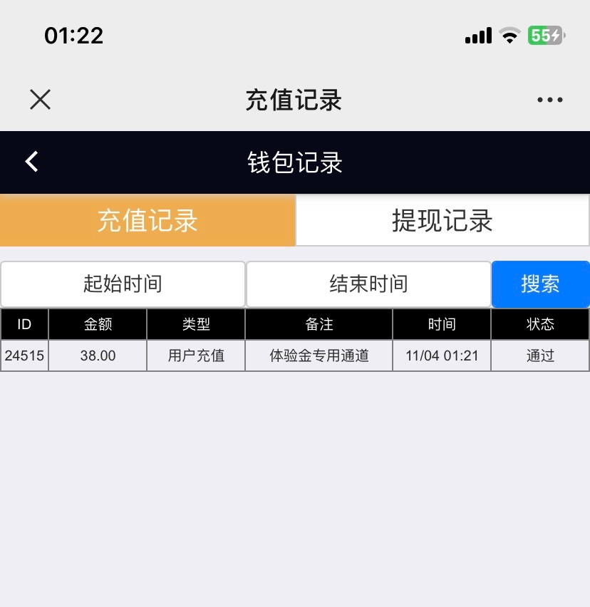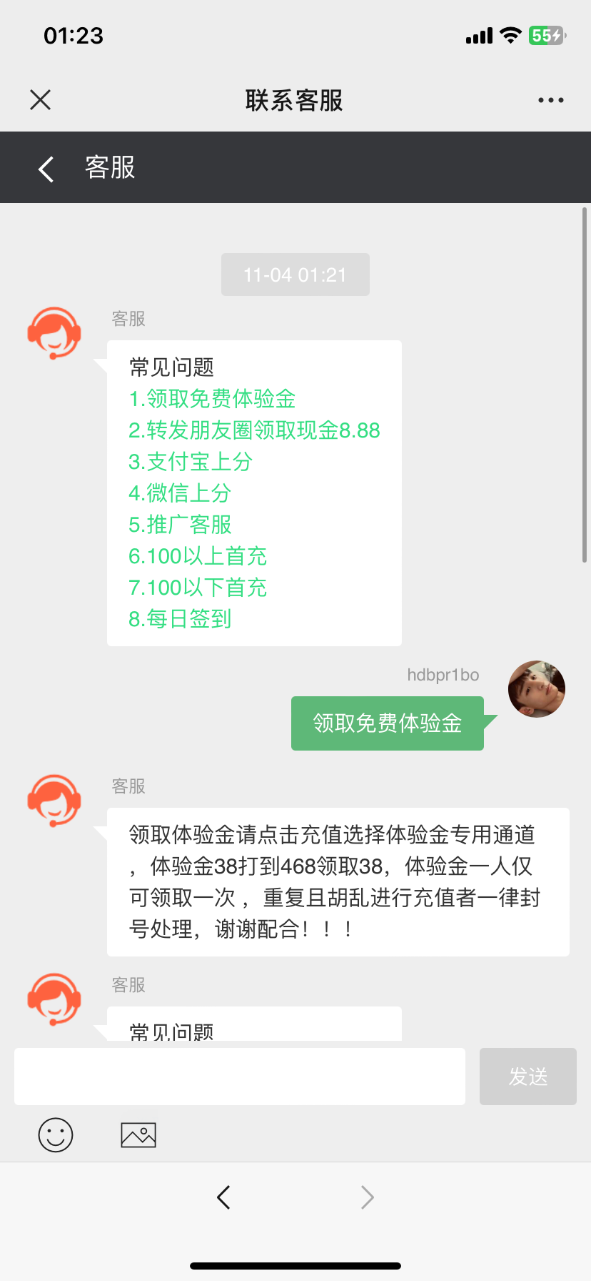 首页充值页面选择体验金通道充值38,体验金38打到468可以下38
