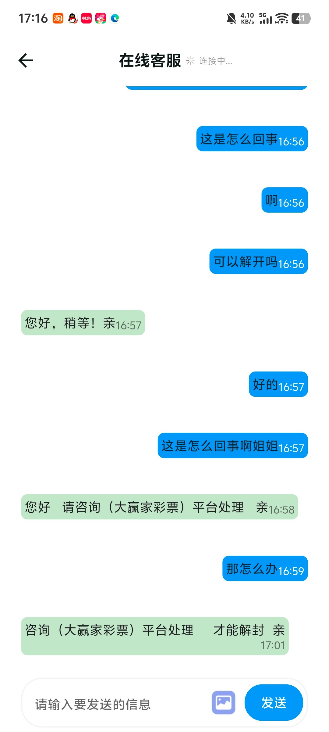 早就说了这种彩票台的代理恶心的要死 别招惹他们最好 你找你经常充值的台子帮你解开