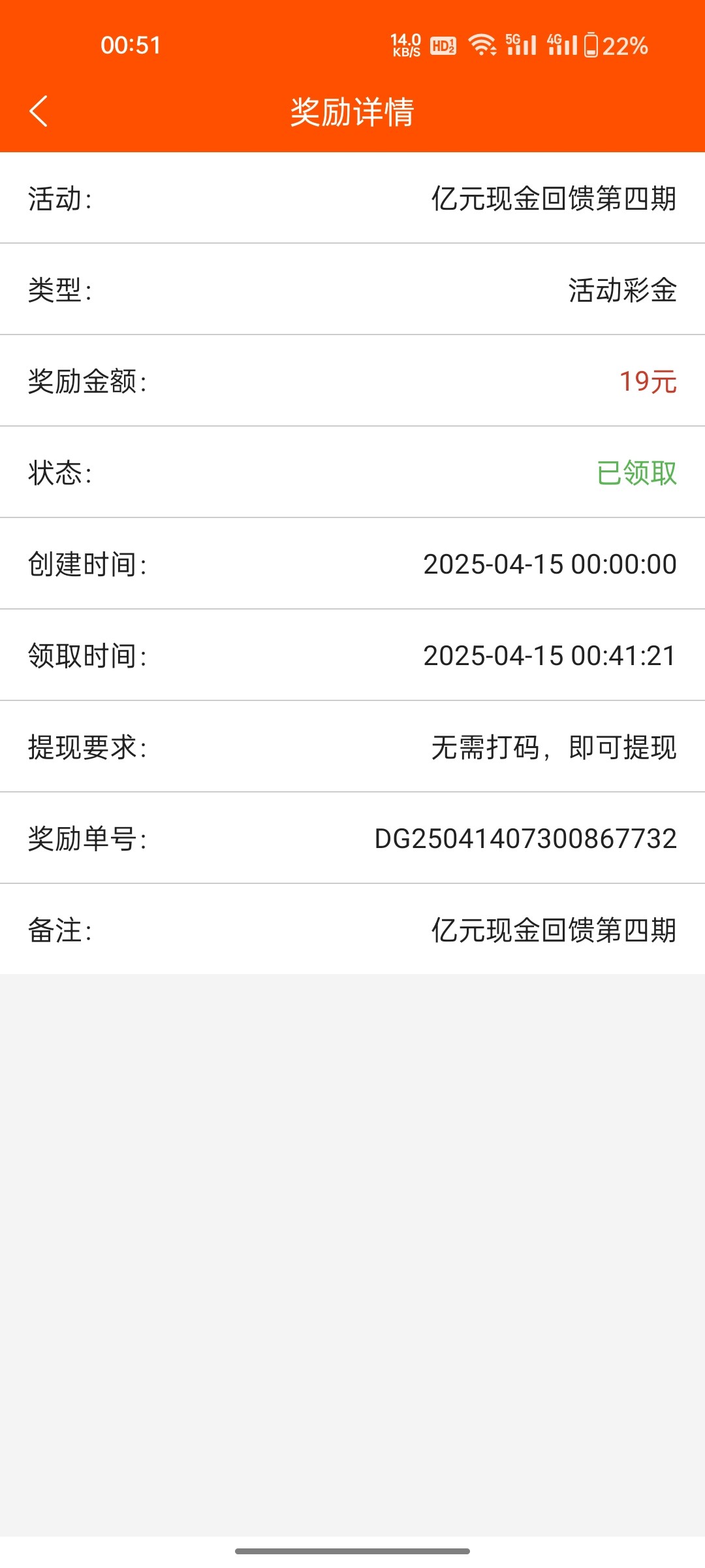 发彩金了