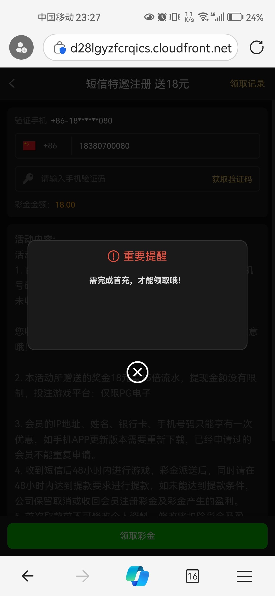 扫号狗好恶心啊,连着发了20个验证码过来,也不知道怎么的把验证码蒙上了,等我去申请活动的时候就显示手机号被使用了