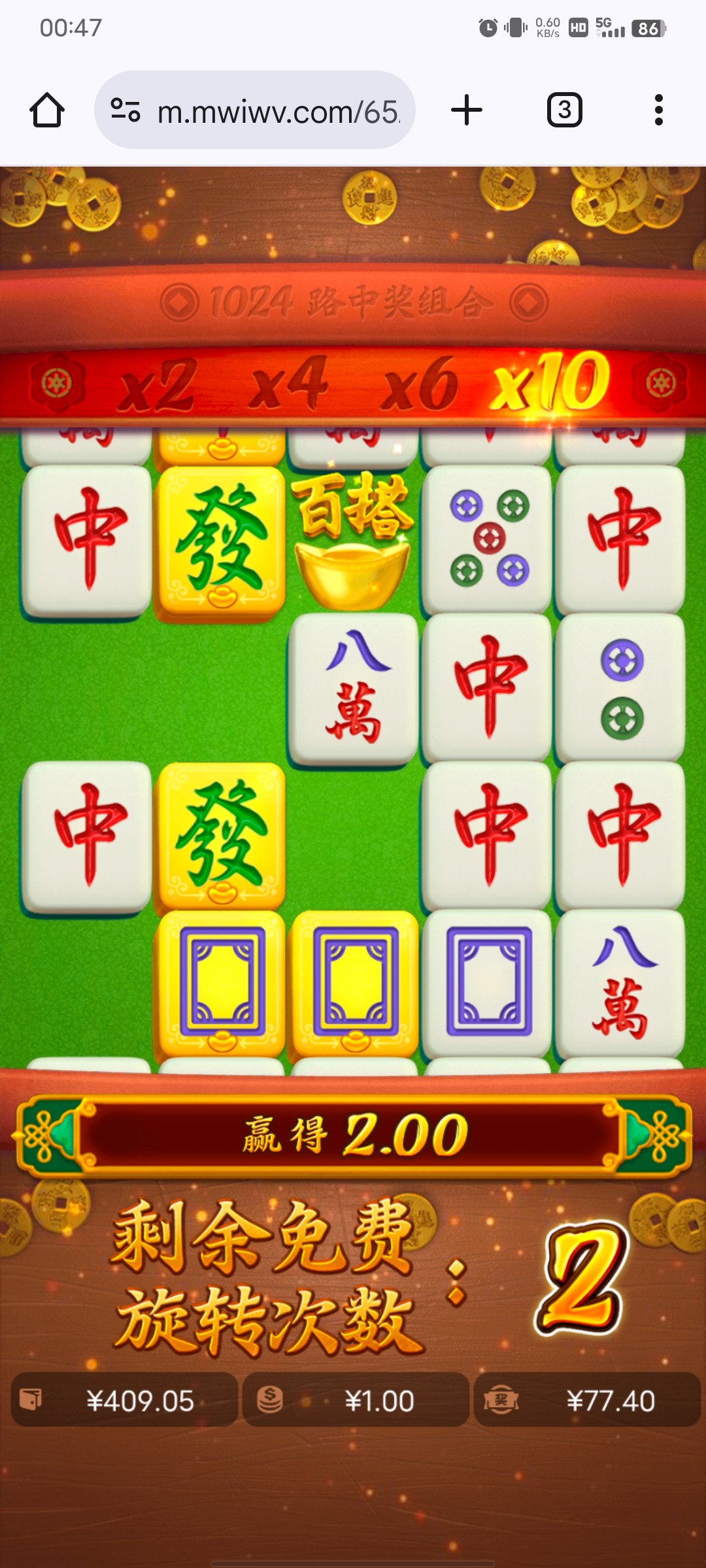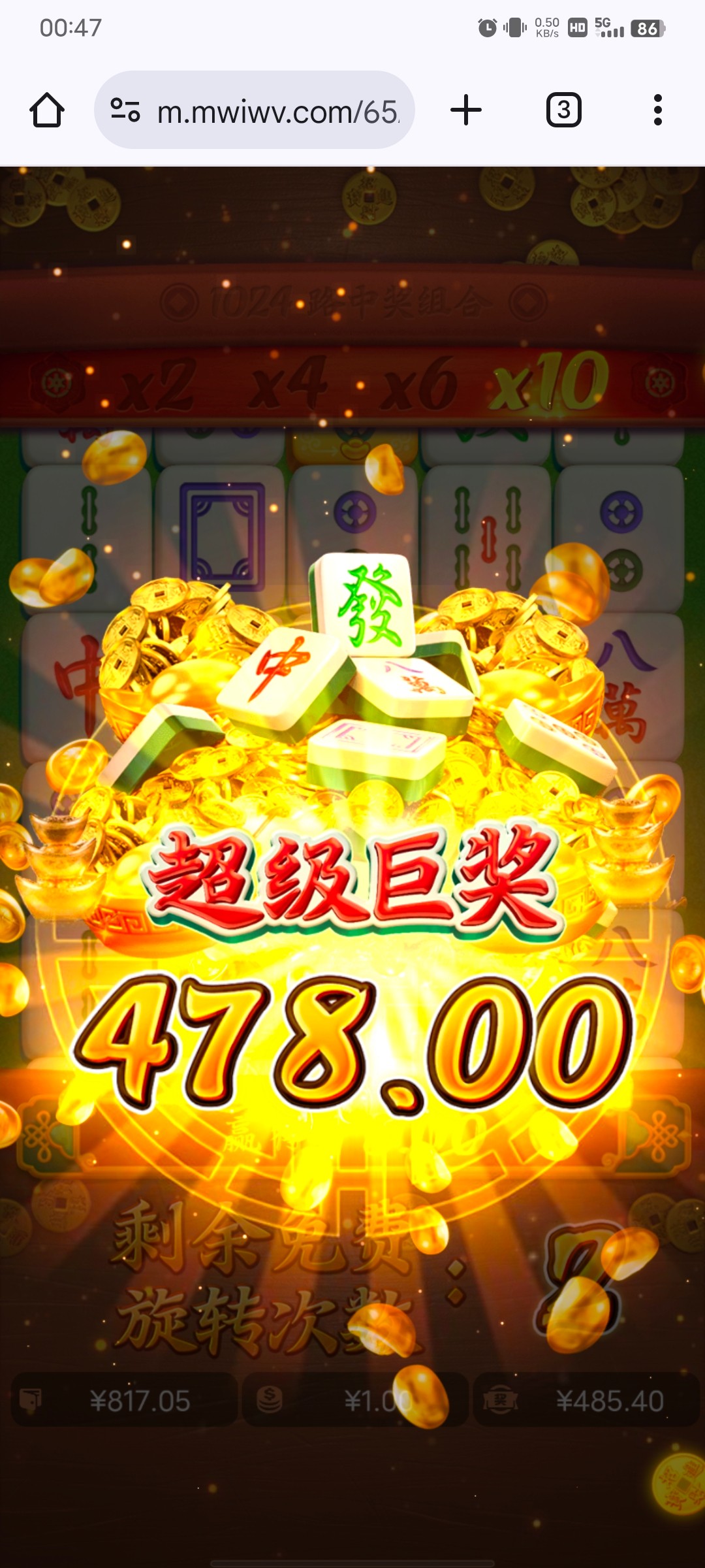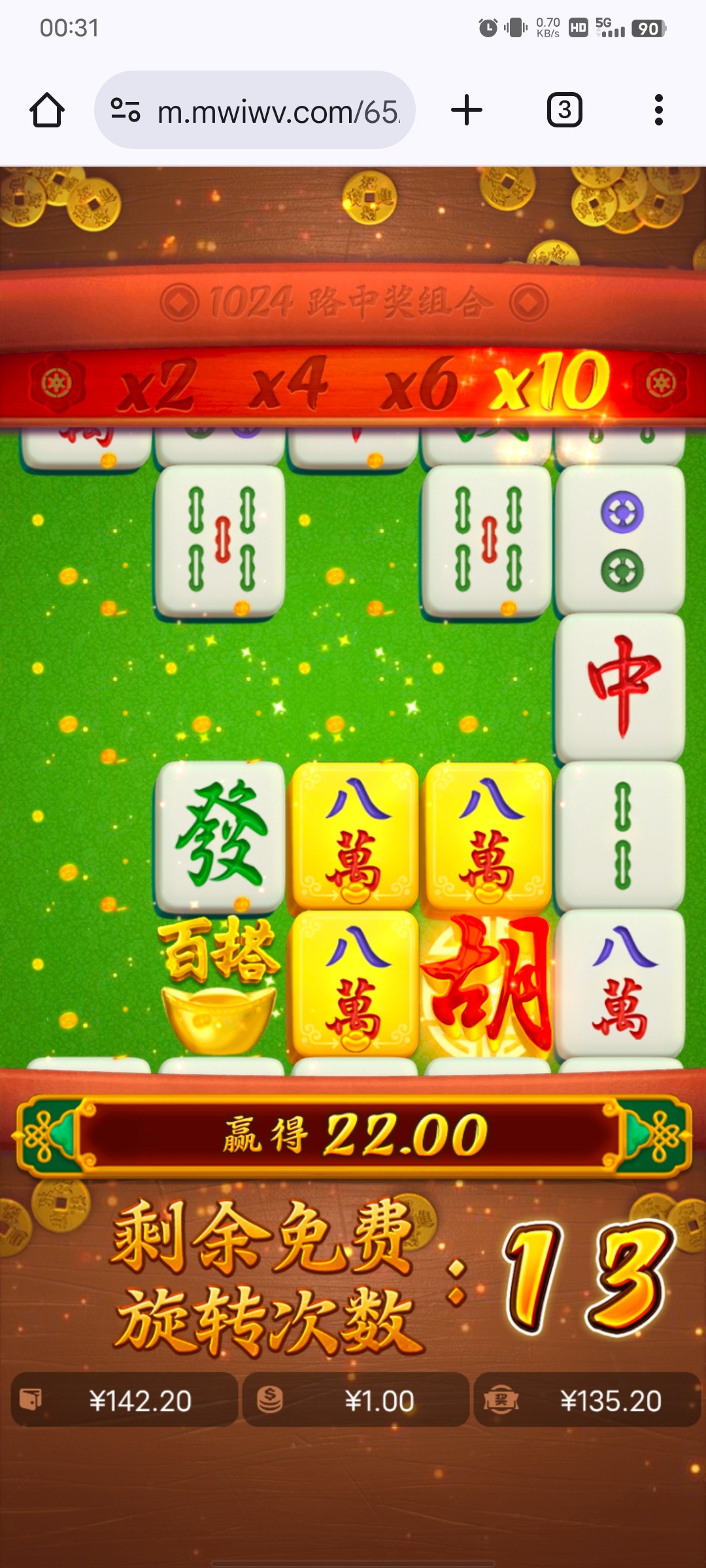 这个月基本都是赢钱的,就昨天输了650,今晚领了11块强行回血,这麻将给的就不太正常,免费一个连着一个,11块进去打了十多分钟就上一千。
