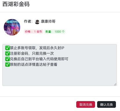 彩金代码投稿给老哥了,上商城自助领