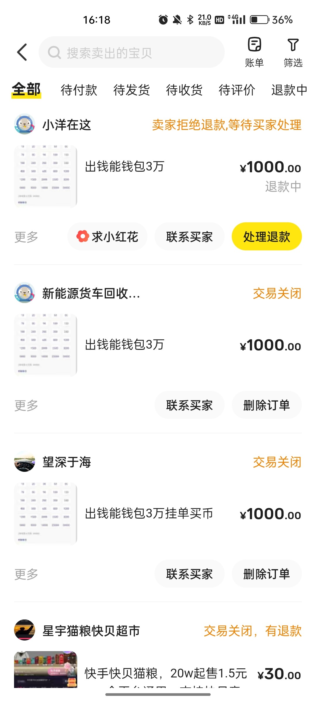 我昨晚也卖了然后半个小时就封号了他就退款