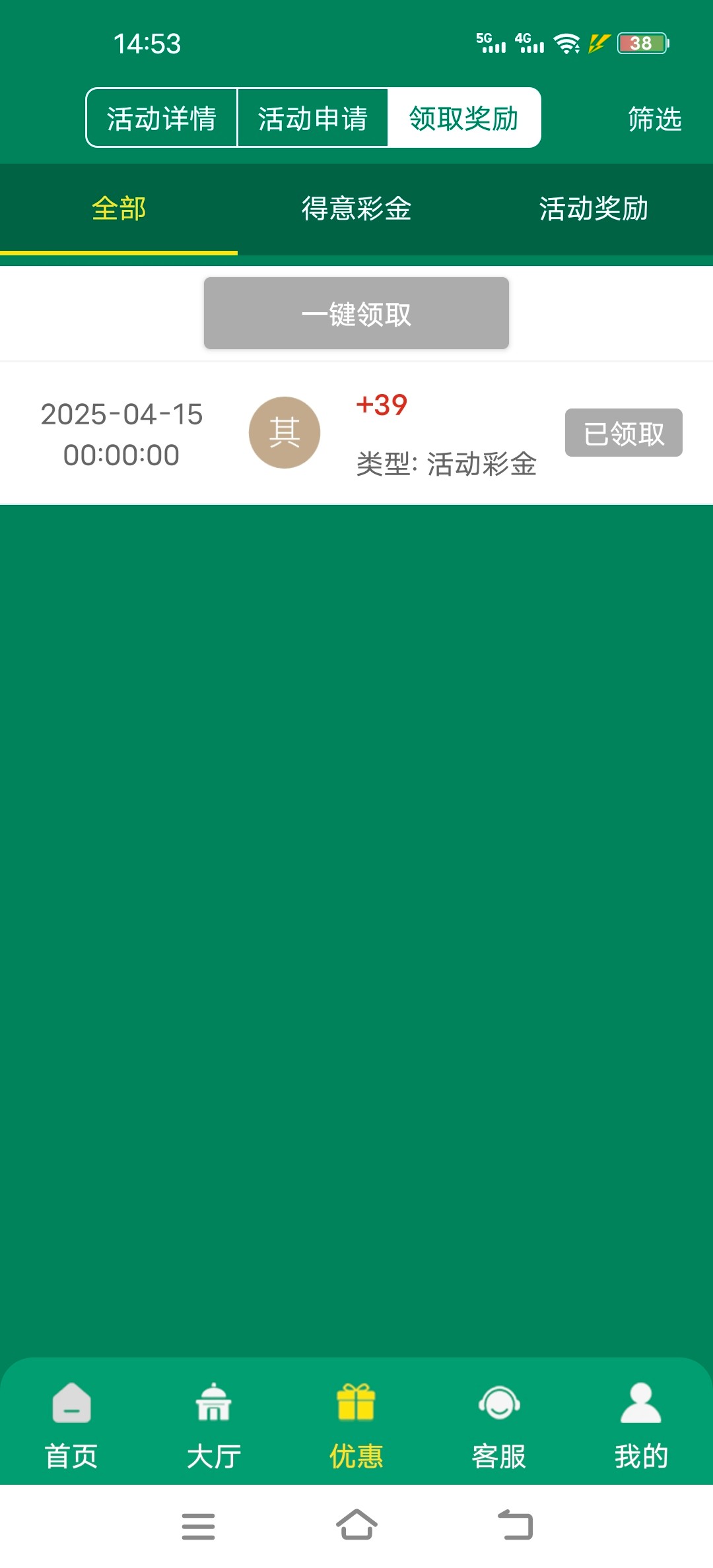 领了45。已经洗白,最高120