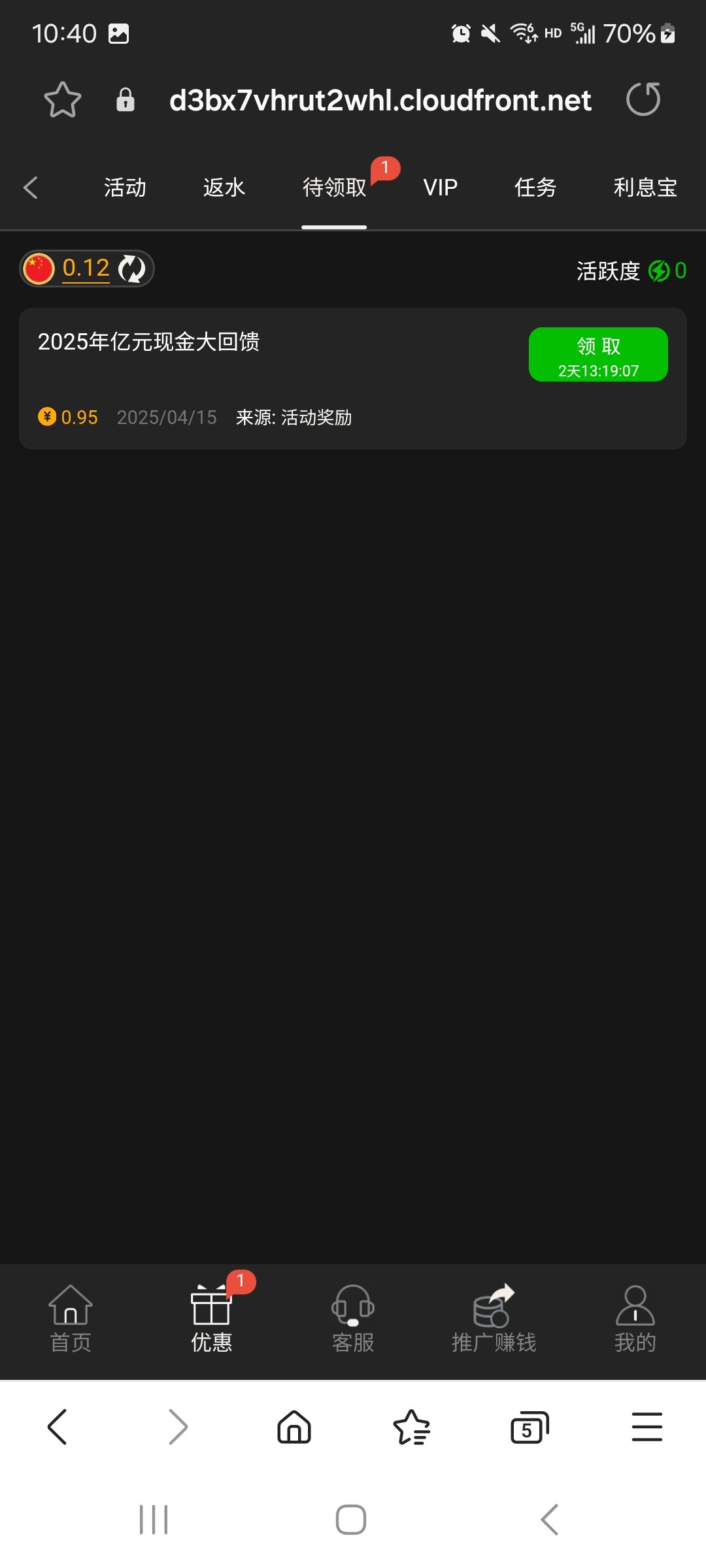 454.com 和 959.com 两个平台登录优惠里自助领取,两个台子都是十块就能提。